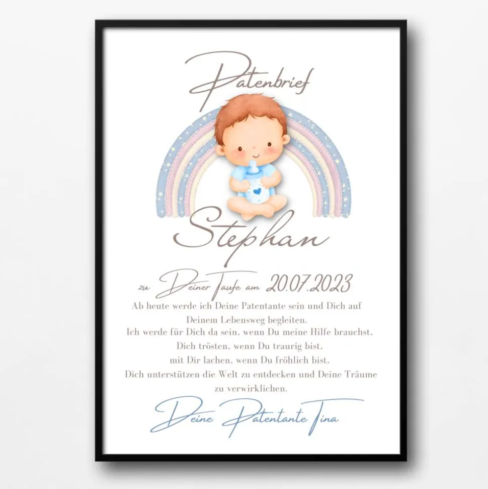 Diesen Patenbrief kannst Du wunderbar einrahmen und als Geburtsposter oder als Urkunde verschenken.