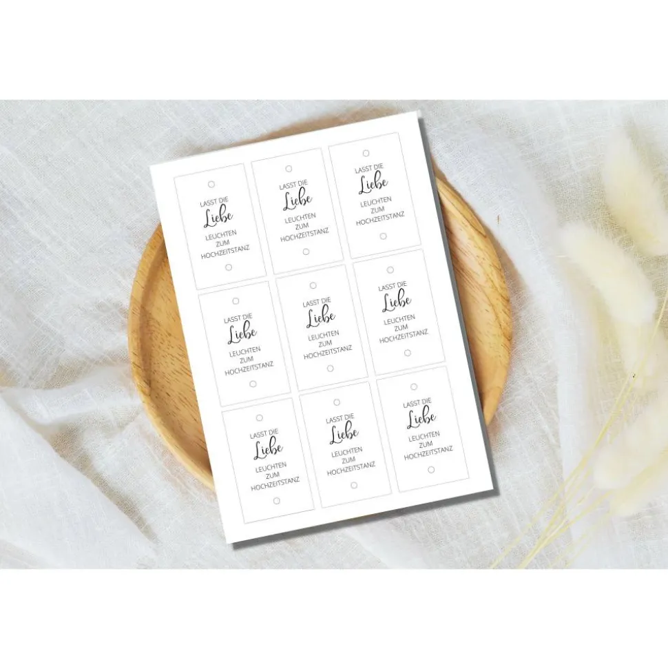 Du planst gerade deine Hochzeit oder du möchtest eine Überraschung für das Brautpaar vorbereiten? Mit dieser PDF Vorlage hast du ganz schnell tolle Anhänger für Wunderkerzen selbst gebastelt. Einfach auf dickem weißen Papier oder auch Kraftpapier / bunten Papier ausdrucken, schneiden, lochen und Wunderkerzen durch stecken – FERTIG !!!