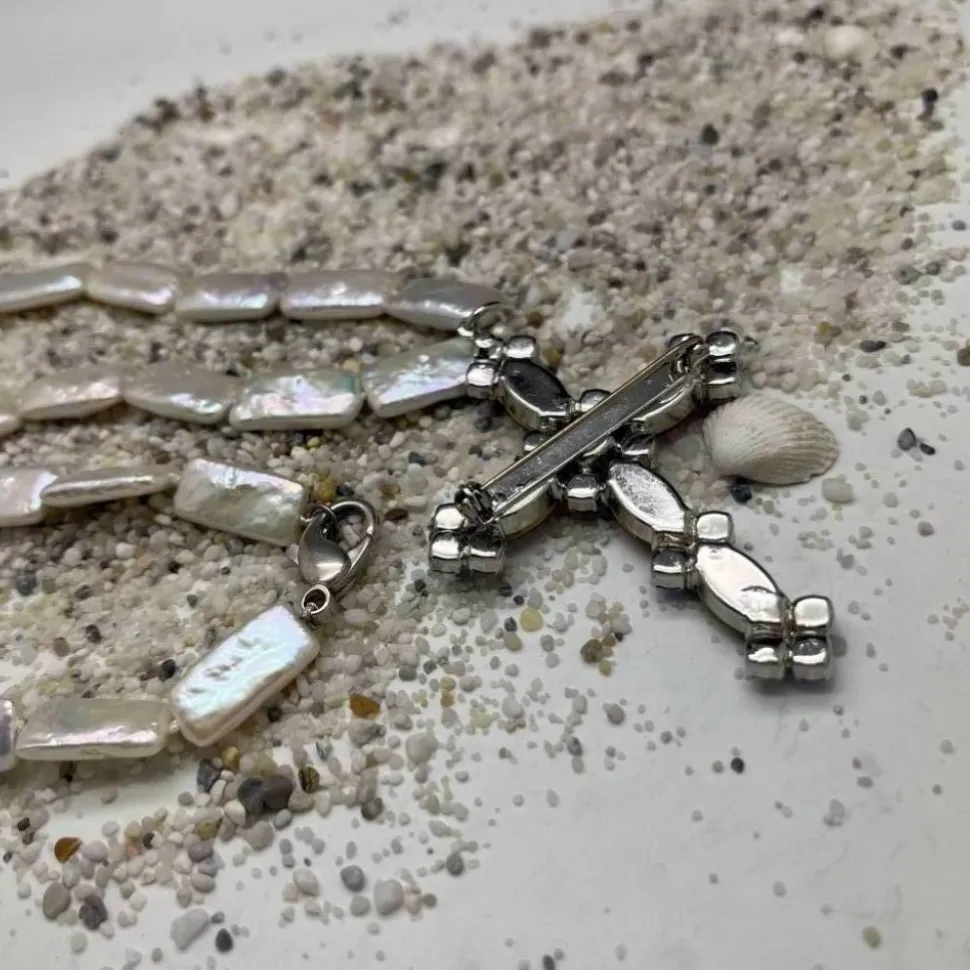 Länge 43 cm; echte Süßwassererlen; Sterling Silber; böhmische Kristalle