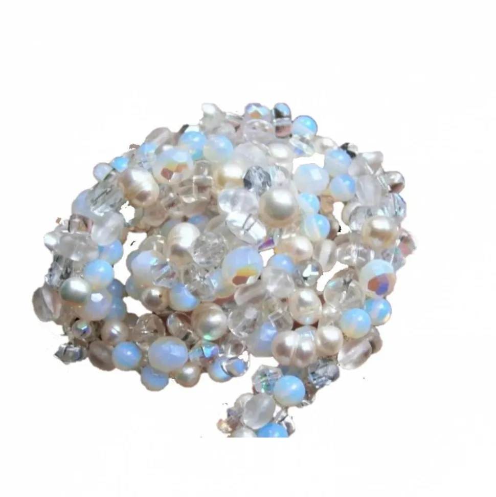 Zarte transparent funkelnde Kette, die trotz ihrer Substanz durch die Vielfalt der Materialien luftig und transparent