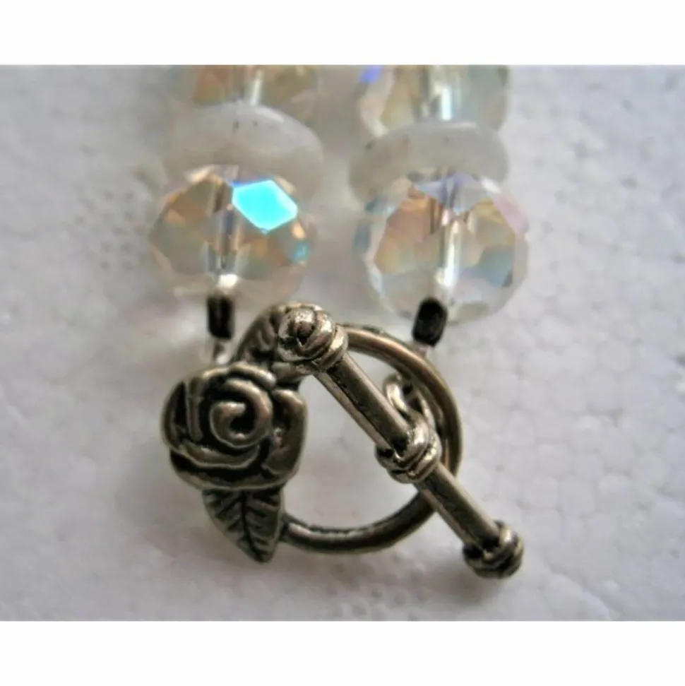 Bergkristall, weißem Achat, Mondstein, synthetischem Mondstein, Böhmischem Glas, Schmuckmetall silberfarben.