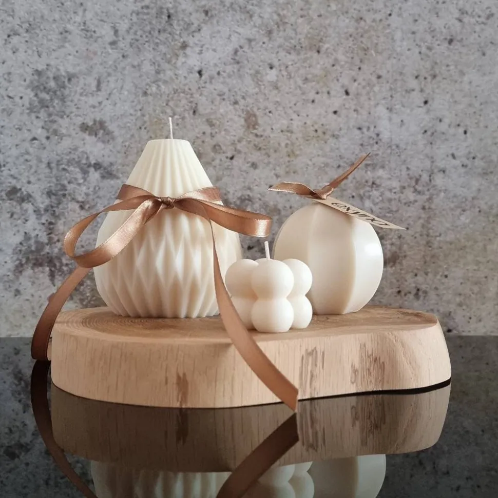 Bei besonders geformten Kerzen (z. B. Skulpturkerzen) kann das Wachs ungleichmäßig verlaufen – bitte stelle sicher, dass die Kerze auf einer geeigneten Unterlage steht, die überschüssiges Wachs auffängt.