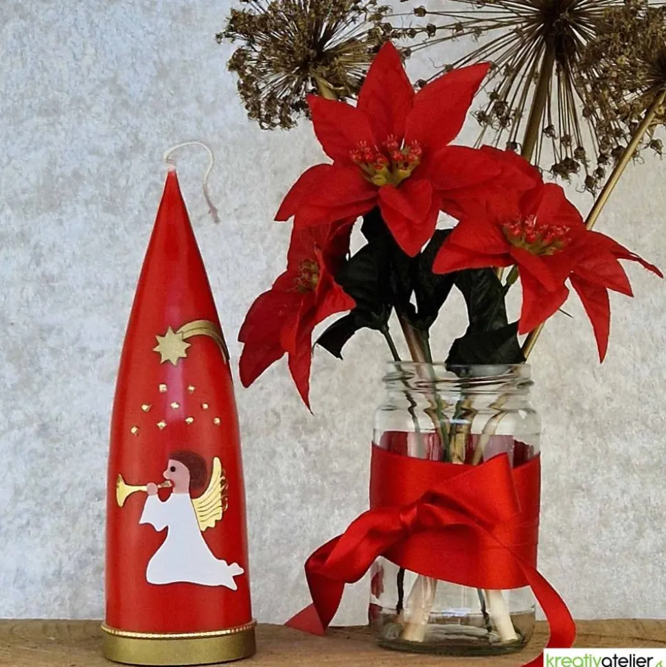 Diese Kerze ist ideal als festlicher Blickfang für die Weihnachtszeit. Ob als Tischdekoration, im Eingangsbereich oder als besonderes Geschenk – die Kombination aus dem spielenden Engel und dem goldenen Stern bringt weihnachtliche Freude in jedes Zuhause. Die sorgfältige Handarbeit macht diese Kerze zu einem besonderen Highlight, das Gemütlichkeit und Wärme ausstrahlt.