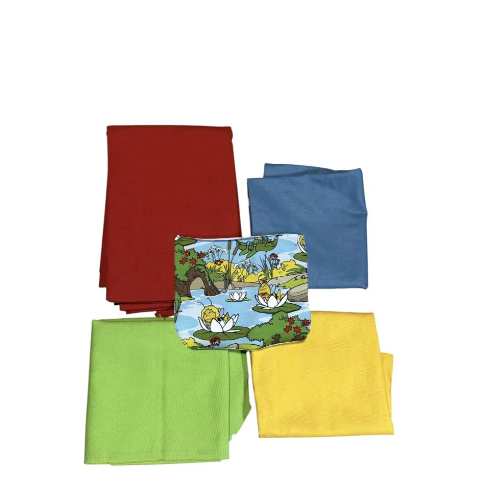 – Farbe: rot, blau, grün oder gelb und der Motivstoff von „der kleinen Biene Maja Willi und dem Grashüpfer“
