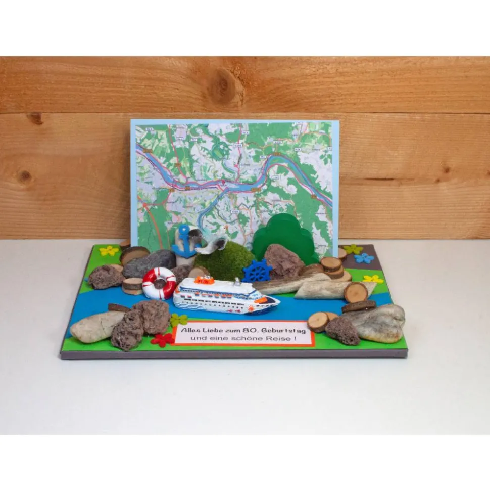 Überrasche Deine Liebsten mit einem einzigartigen Geldgeschenk zur Flusskreuzfahrt! Diese aufwendig gestaltete Karte ist perfekt für Paare, Hochzeitsreisen, den Ruhestand oder als exklusives Geschenk für Kollegen, Oma, Mutti oder Vati. Die Karte zeigt ein detailreiches Fluss-Kreuzfahrtschiff, Möwen, Bäume und Blumen – alles liebevoll arrangiert. Sie eignet sich ideal für Gutscheine oder Bargeldgeschenke rund um Fluss-Kreuzfahrten auf Donau, Rhein, Main, Elbe, Weser oder Rhone.