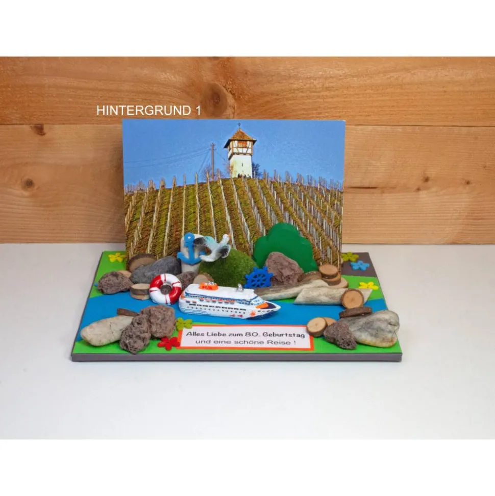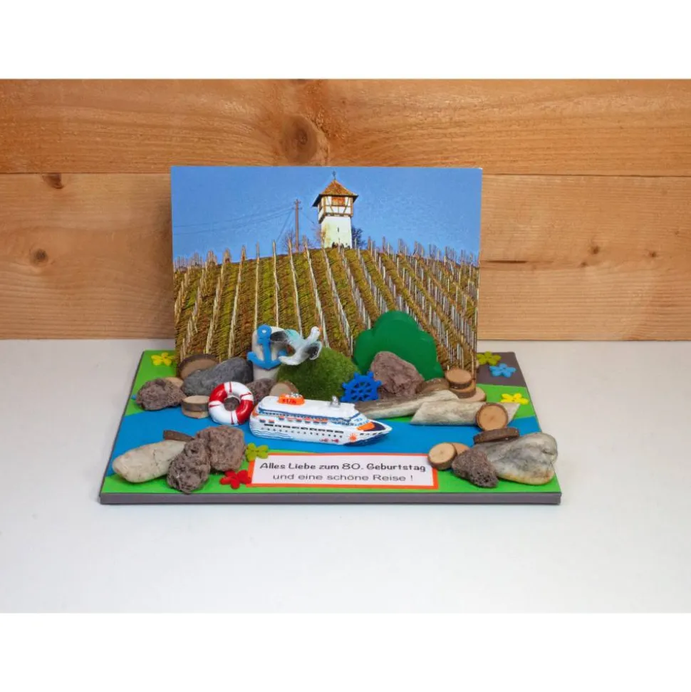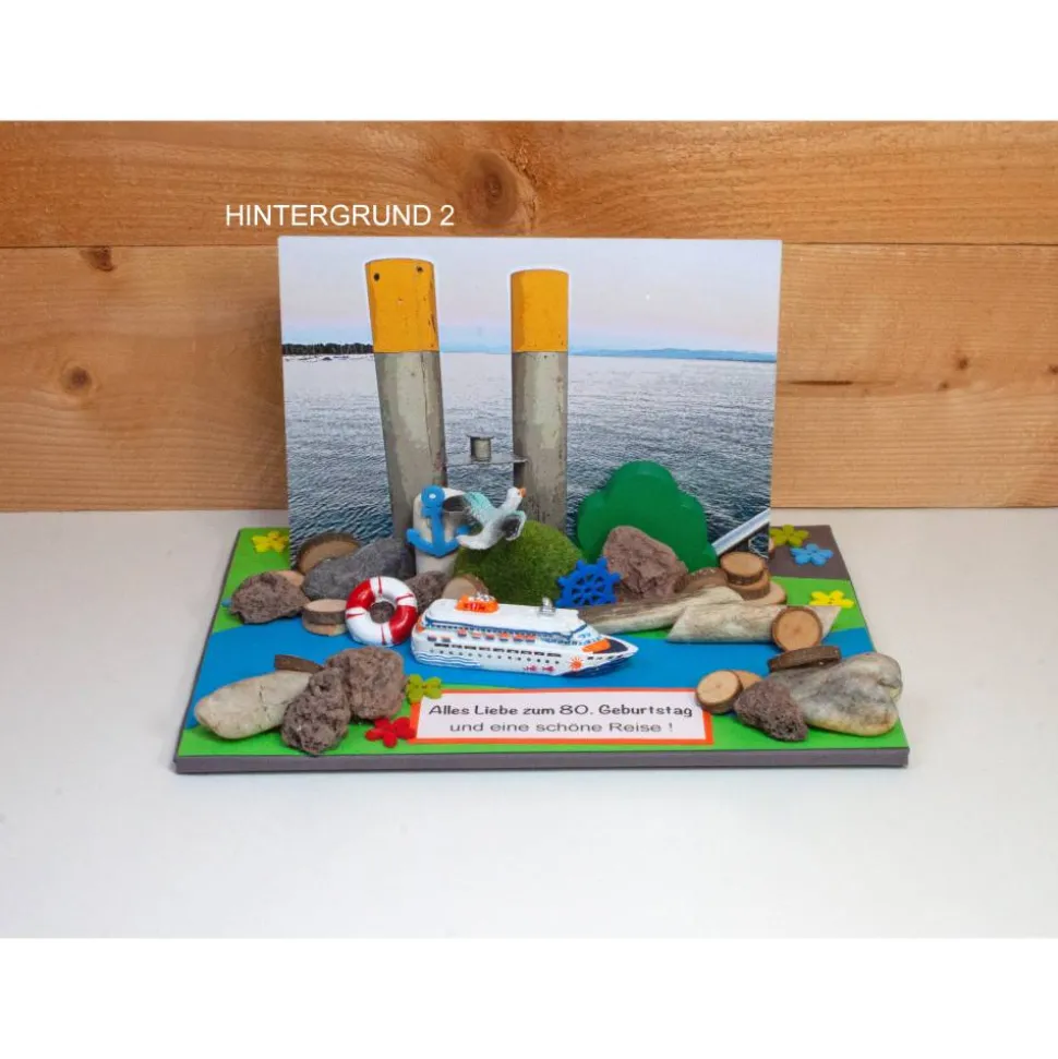 Der Umschlag auf der Rückseite ist mit einem Fotomotiv beklebt und dient als maritime Hintergrundkulisse. Hier kannst Du Dein Geldgeschenk oder einen Reisegutschein sicher unterbringen. Zusätzlich bietet die dazugehörige Klappkarte Platz für persönliche Grüße oder kann direkt als Gutschein verwendet werden.