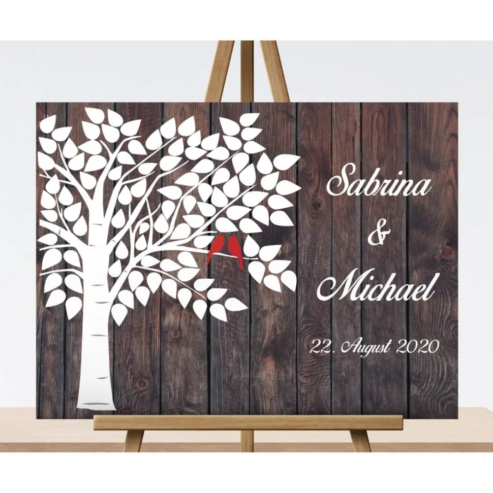 Personalisierbares Hochzeitsgästebuch – Hochzeitsbaum Leinwand als Erinnerung