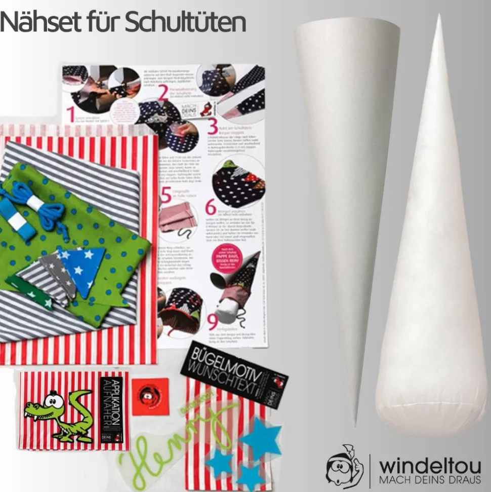 Unser Nähset für Schultüten richtet sich an alle DIY-Enthusiasten. Passend für einen 70 cm hohen Schultüten-Rohling mit einem Durchmesser von 18 cm. Alle Teile sind vorgeschnitten und mit 1,0 cm Nahtzugabe versehen.