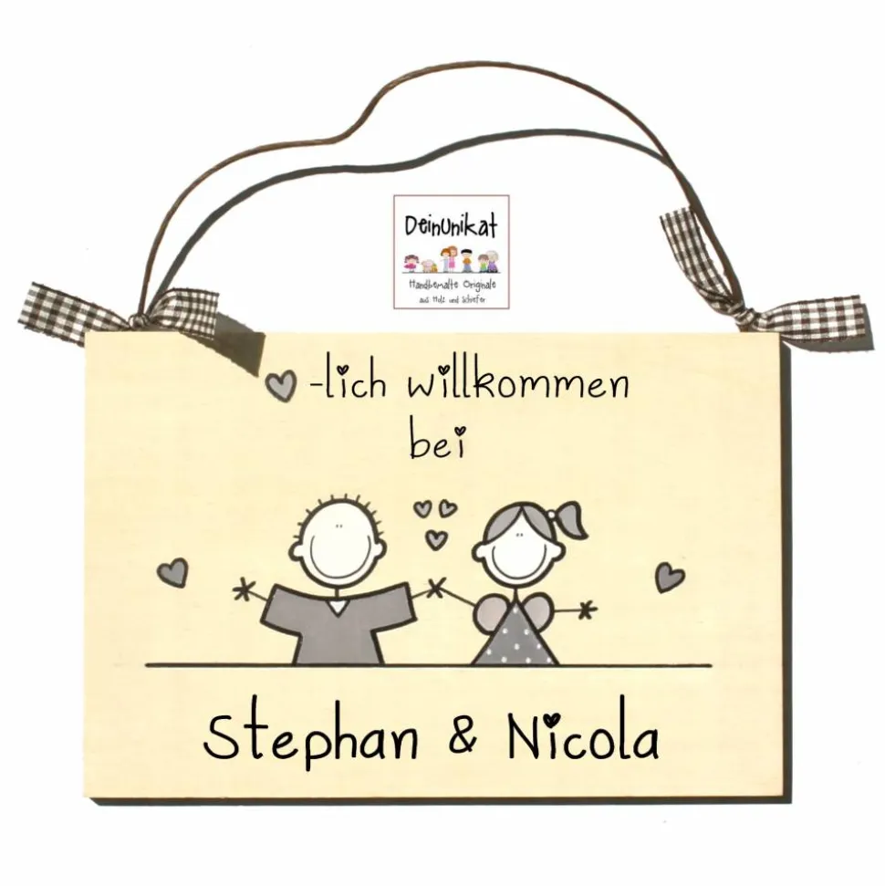 Verschenke ein einmaliges Türschild aus Holz, das Paare begeistert!