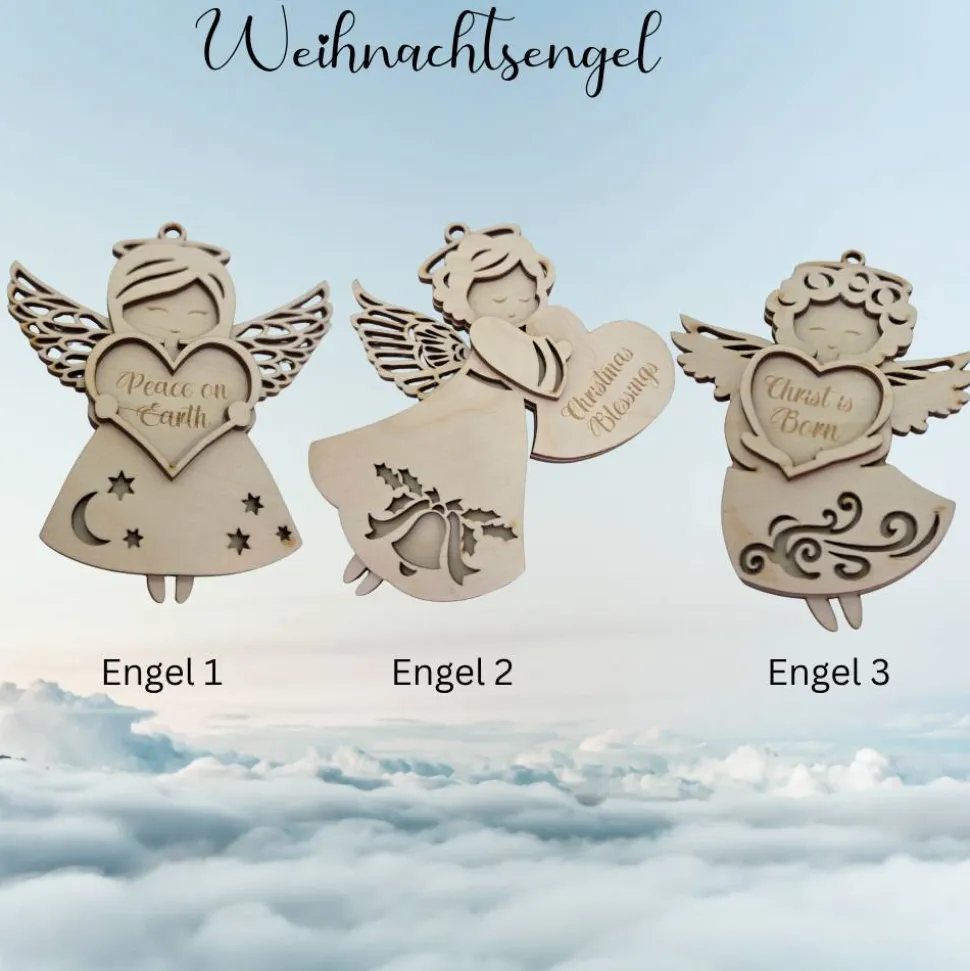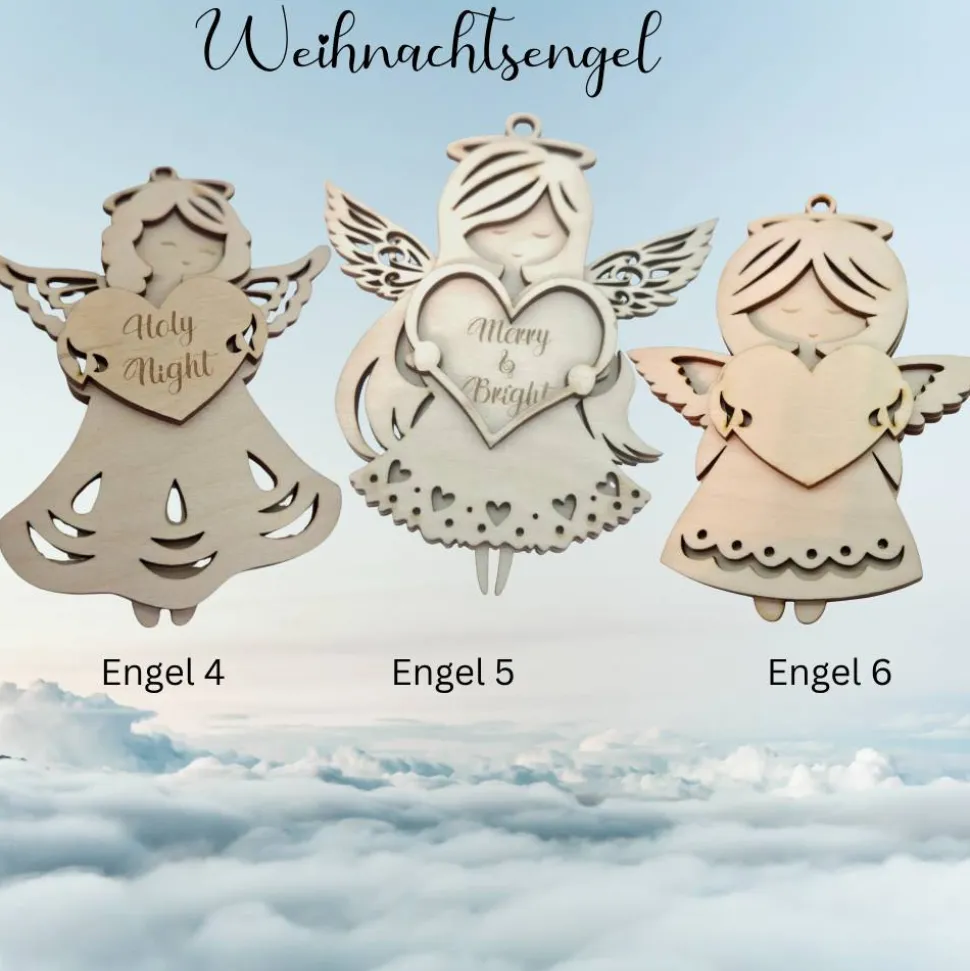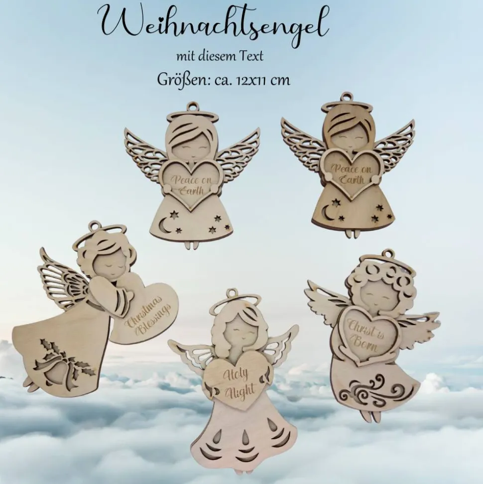 Verleihe deinem Weihnachtsbaum einen einzigartigen und natürlichen Look mit bezaubernden 3D Weihnachtsengeln aus Birkenholz zum Hängen. Diese Engel werden liebevoll in Handarbeit gefertigt und bestehen aus 2-3 Lagen, die sorgfältig mit Laser graviert und glatt geschnitten werden. Die individuelle Personalisierung mit Namen deiner Familie, Freunde oder einem vorgegebenen Text macht jeden Engel zum besonderen Unikat.
