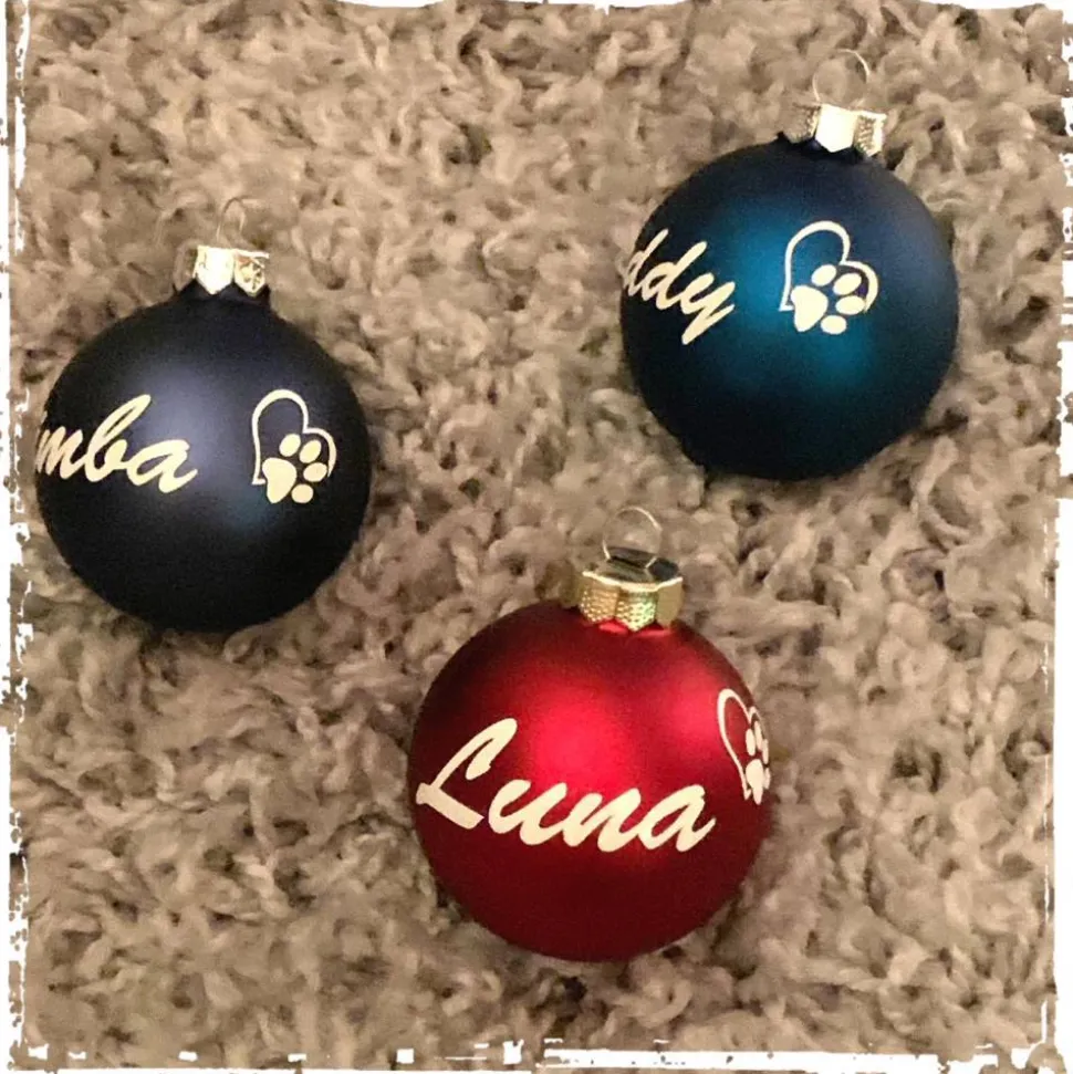 Beschriftet wird die Christbaumkugel mit dem Namen Ihres Tieres sowie einem Pfotenabdruck mit Herz.