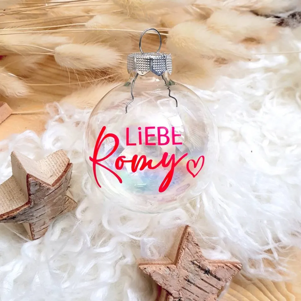 Personalisierte Christbaumkugel / Weihnachtskugel mit Name oder Wunschtext – aus Glas – Ø 6 cm – Geschenkidee