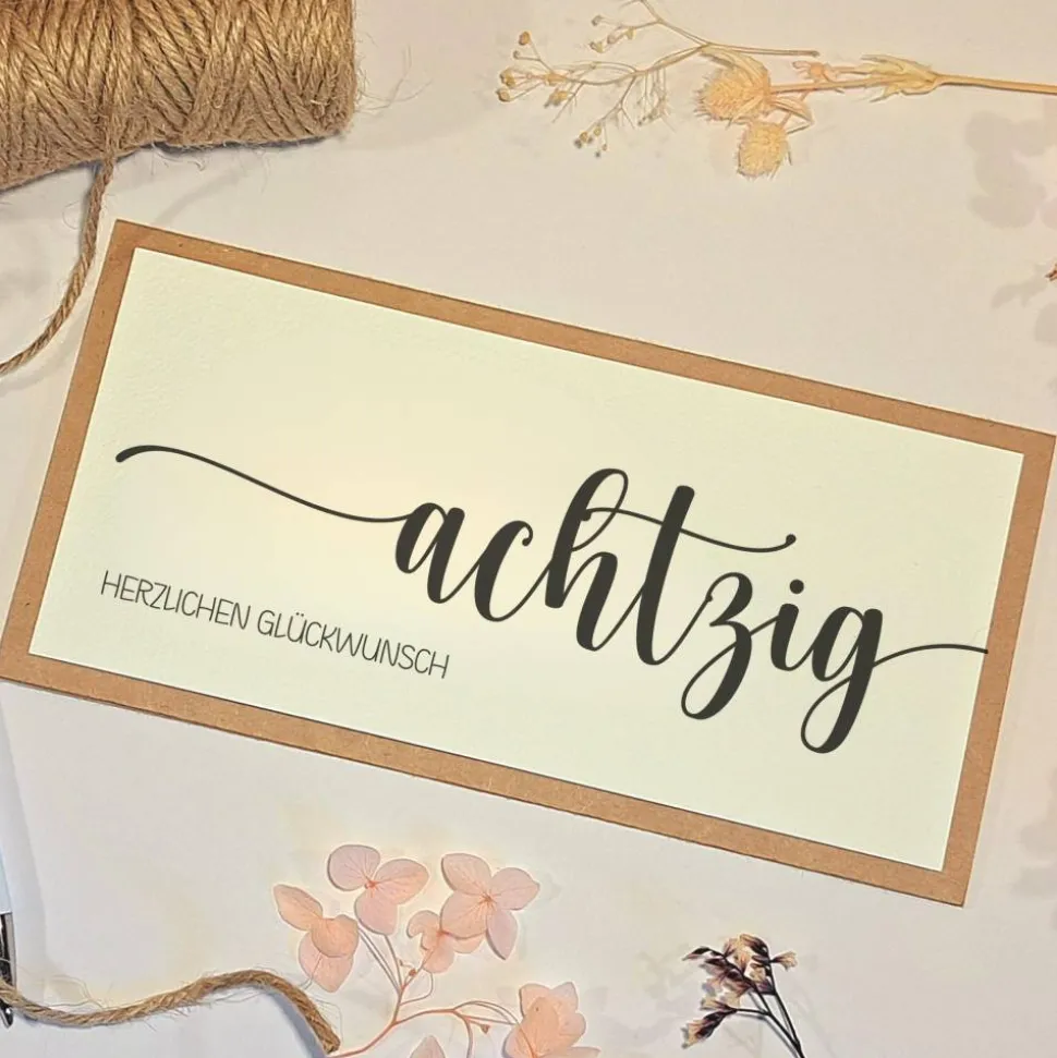 • Außen mit Zahl „achtzig“, innen viel Platz für persönliche Worte
