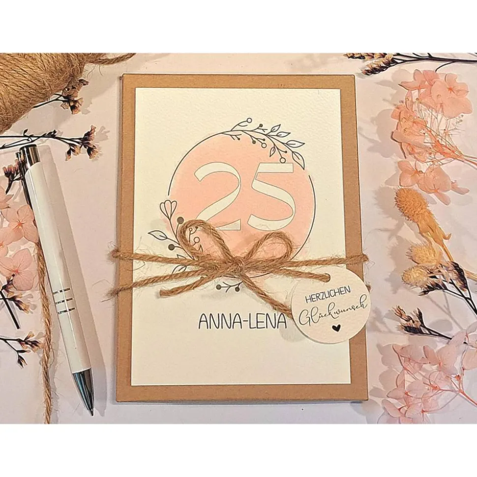 Du suchst nach einer besonderen Verpackung für dein Geldgeschenk? Diese hochwertige Geschenkbox aus Kraftkarton ist die perfekte Lösung. Sie wird individuell mit der Zahl 25 und dem Namen des Geburtstagskindes verziert, sodass dein Präsent einzigartig und persönlich überreicht werden kann.