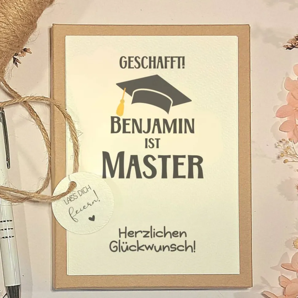 Diese Geschenkverpackung ist die perfekte Wahl für Geldgeschenke oder kleine Präsente zum Masterabschluss – ein stilvolles und persönliches Geschenk, das in Erinnerung bleibt!