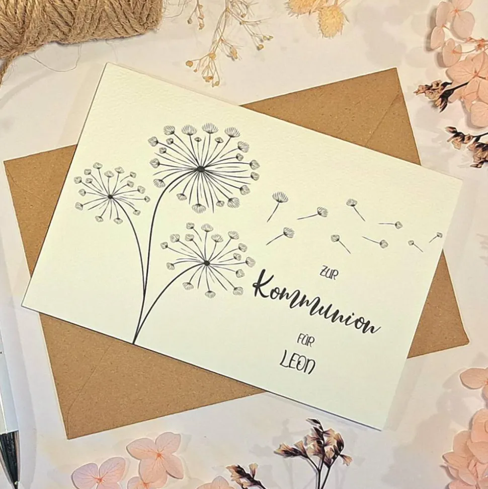 Verschenke eine einzigartige und personalisierte Glückwunschkarte zur Kommunion! Diese liebevoll gestaltete Karte ist perfekt, um deine Glückwünsche zur Erstkommunion persönlich zu überbringen. Die personalisierbare Karte wird individuell mit dem Namen des Kommunionkindes gefertigt und macht dein Geschenk zu etwas ganz Besonderem.