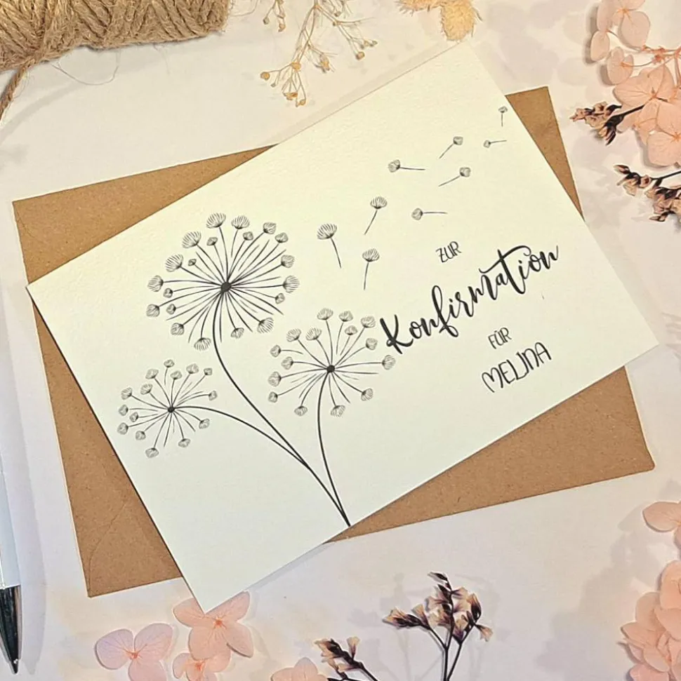 Du erhältst eine edle Klappkarte aus 300gr. starkem Karton mit edler Struktur im handlichen A6-Format (105×148 mm). Jede Karte wird mit einem passenden Umschlag aus Kraftpapier geliefert – bereit zum Verschenken!