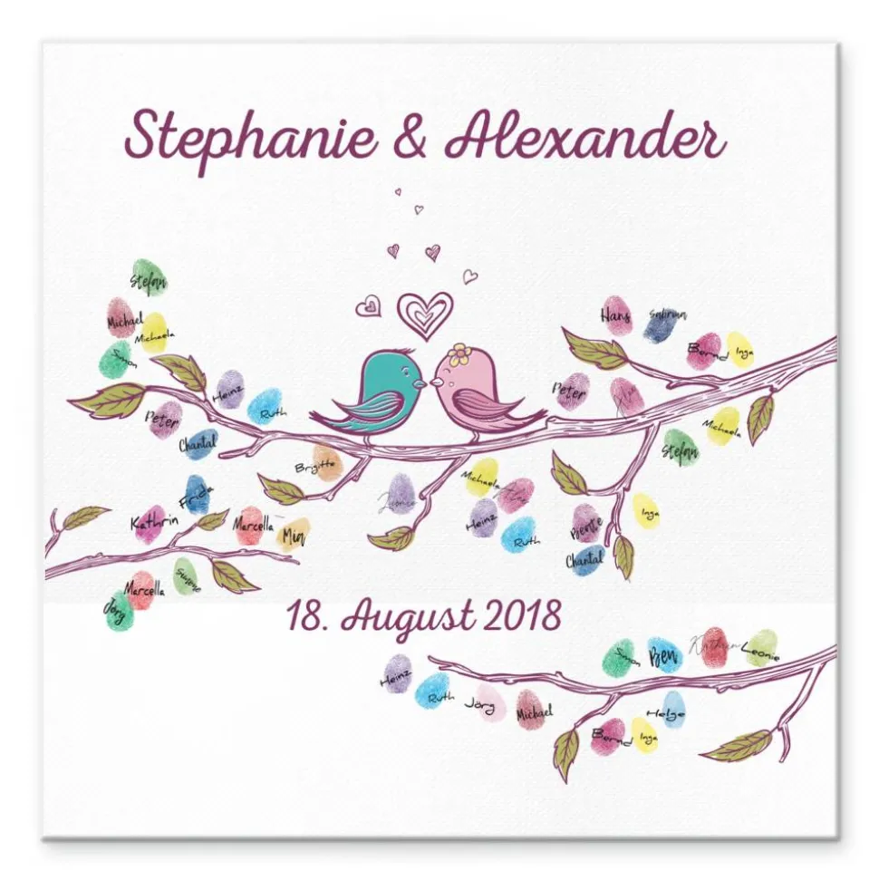 Mit dieser Leinwand als Gästebuch schaffen die Gäste eine ganz persönliche Erinnerung. Fingerabdrücke und Unterschriften machen daraus ein einzigartiges Kunstwerk.