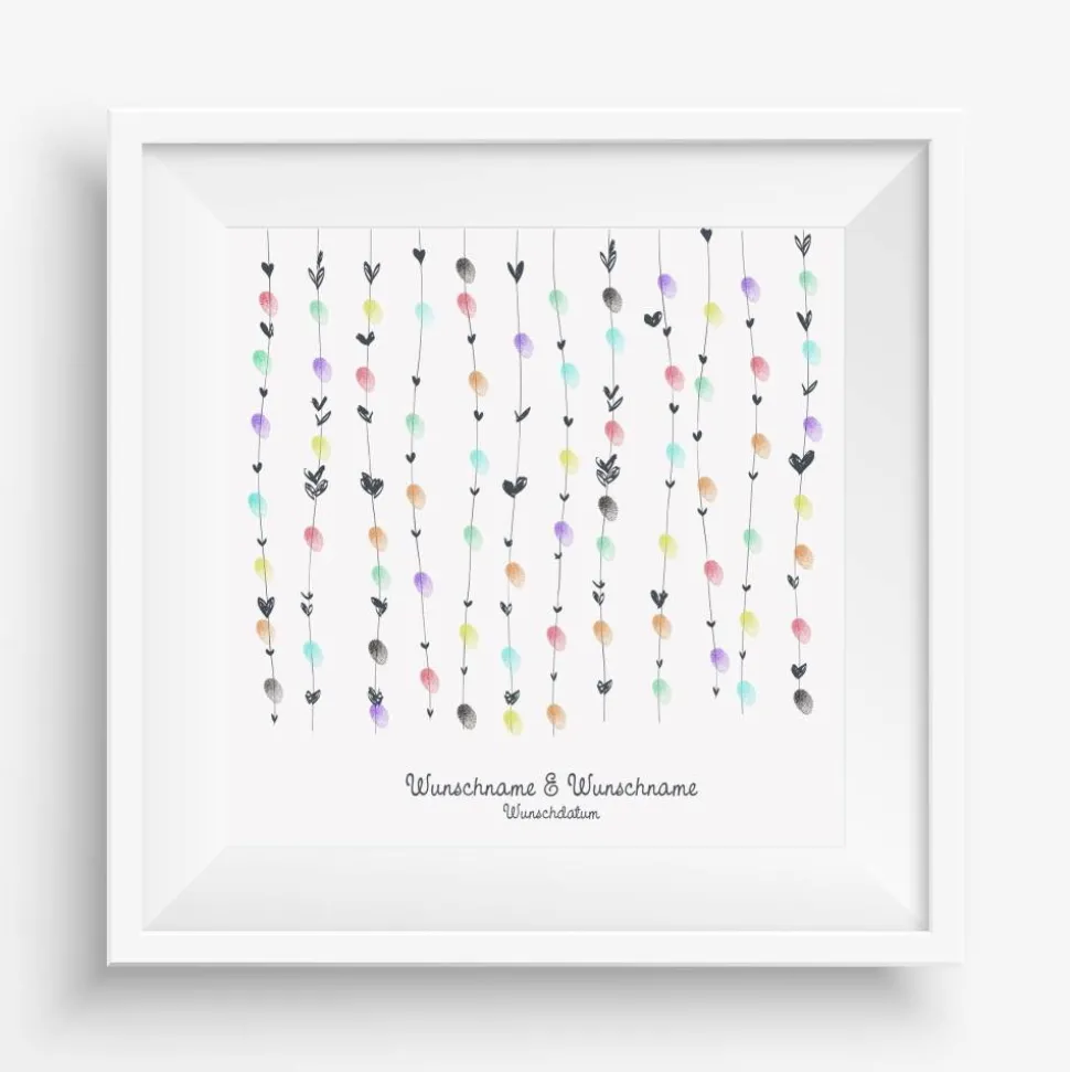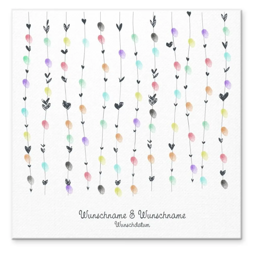 Überrasche das Brautpaar mit einem Fingerabdruck-Gästebuch auf Leinwand. Eure Gäste hinterlassen ihre Spuren mit Stempelkissen – so entsteht ein einmaliges Kunstwerk, das Hochzeit und Erinnerung verbindet.