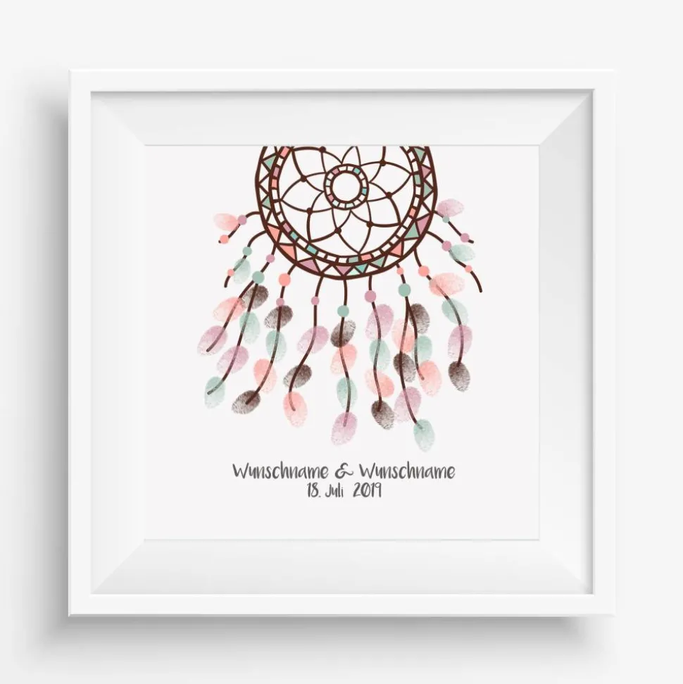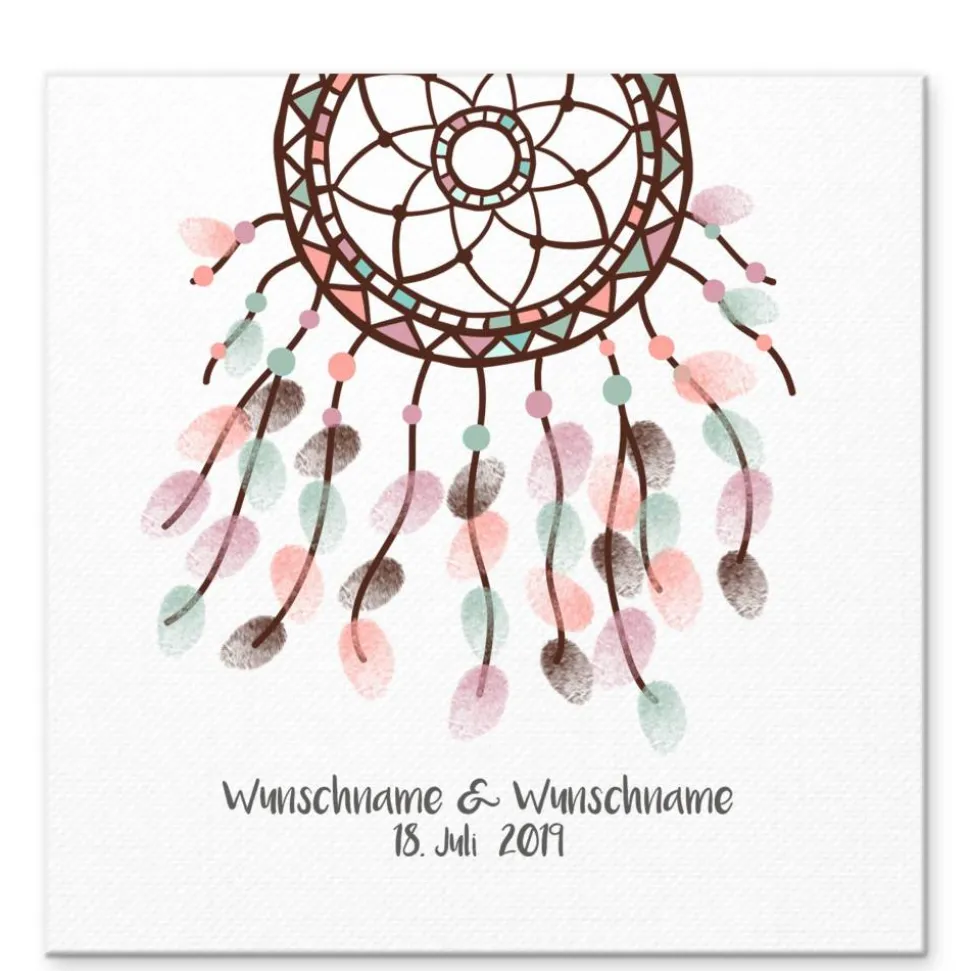 Die Gäste können mit Stempelkissen ihren Fingerabdruck auf der hochwertigen Leinwand hinterlassen und signieren. Ein einzigartiges und individuelles Hochzeitsgeschenk und Spaß auf der Hochzeitsfeier, welches noch lange in Erinnerung bleibt.