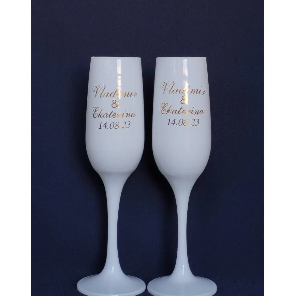 Personalisierte Hochzeitsgläser und Samtüberzug oder bemalte Champagnerflasche | Geschenk für Brautparty und Gäste