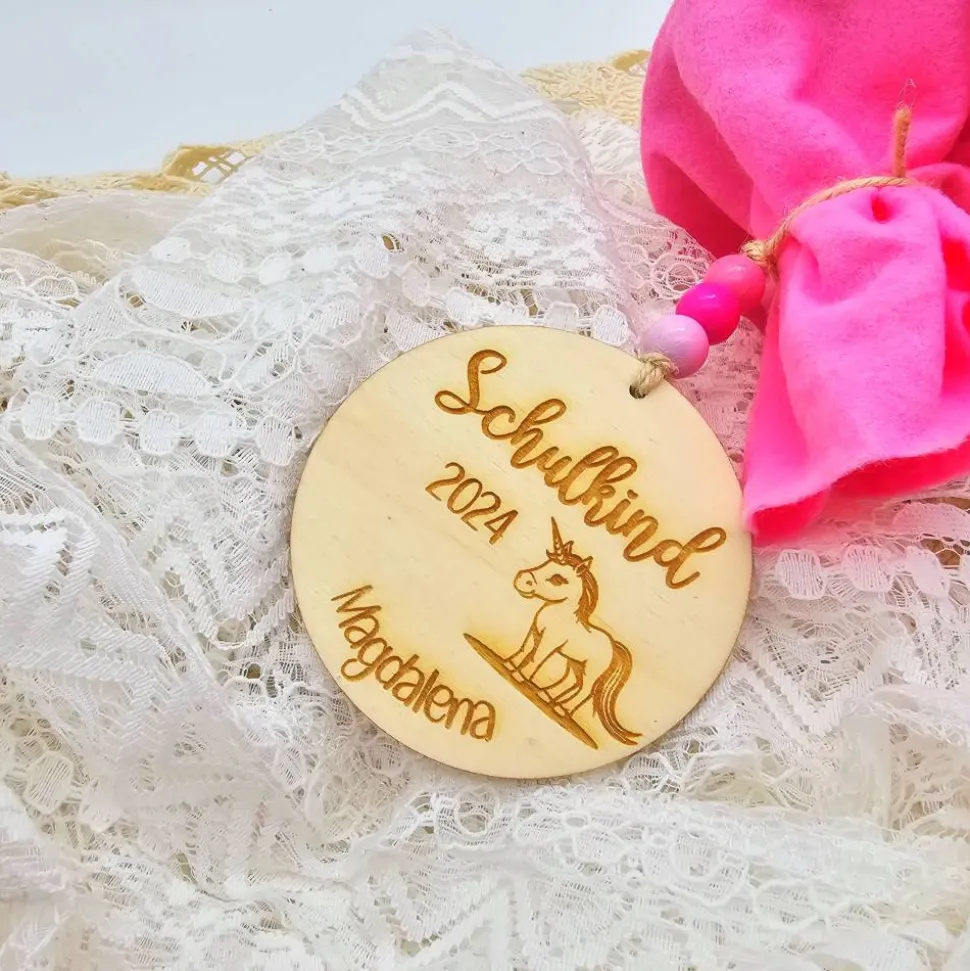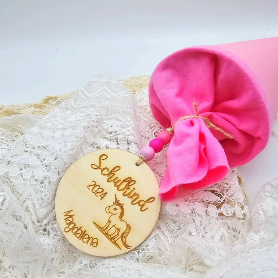 Bereite dein Schulkind perfekt auf den ersten Schultag vor mit unserem personalisierten Schultütenanhänger. Dieser einzigartige Anhänger fügt der Schultüte deines Kindes eine besondere Note hinzu. Wähle aus verschiedenen Farben (Holzperlen ) und Designs und füge den Namen deines Kindes hinzu, um den Anhänger besonders persönlich zu gestalten. Ideal als Geschenk zur Einschulung.