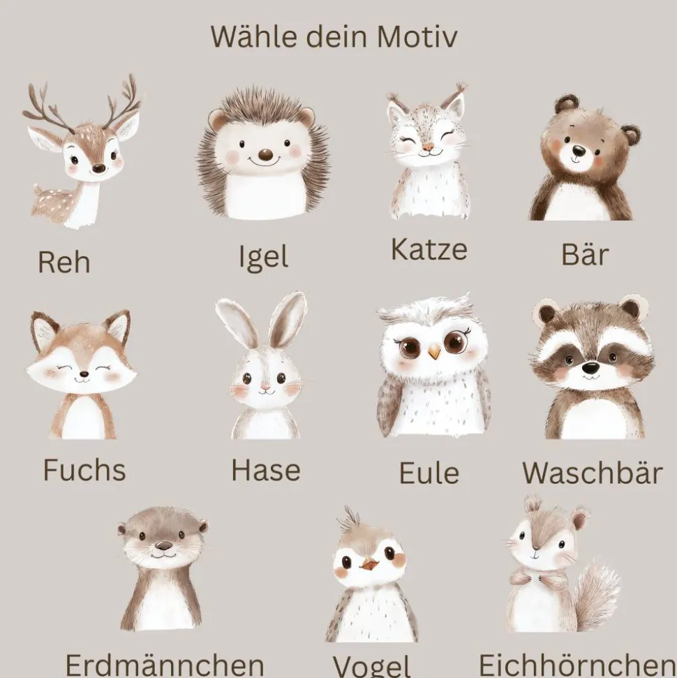 | Style | Bär, Eule, Fuchs, Hase, Igel, Katze, Reh, Waschbär |