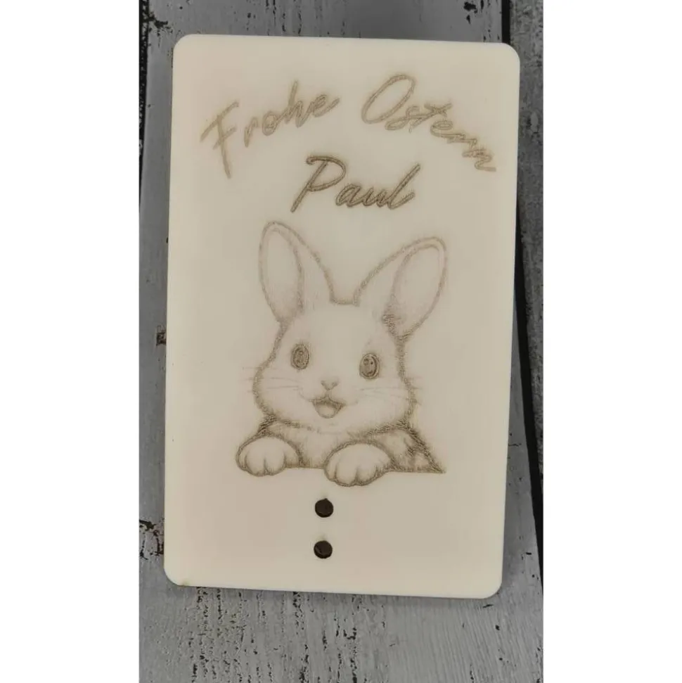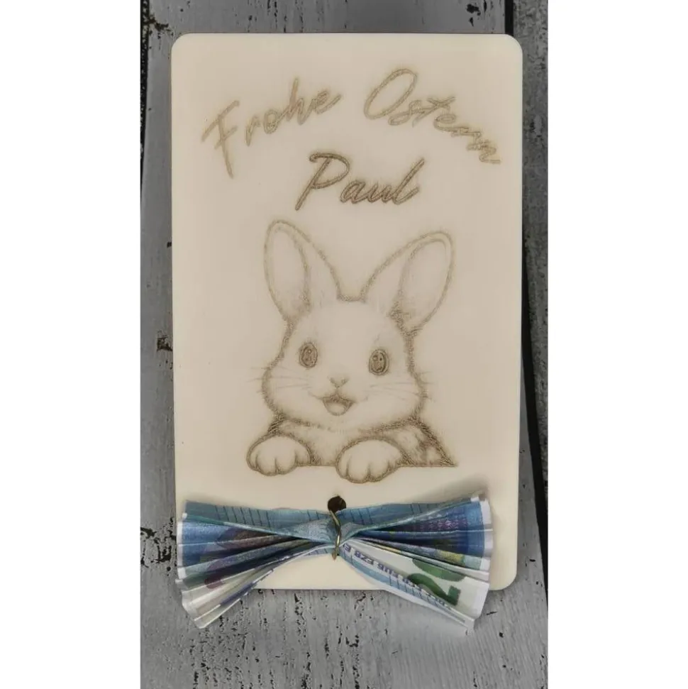 Wähle deinen Wunschnamen und, wenn gewünscht, einen Gruß für die Rückseite – und mache dein Ostergeschenk einzigartig!
