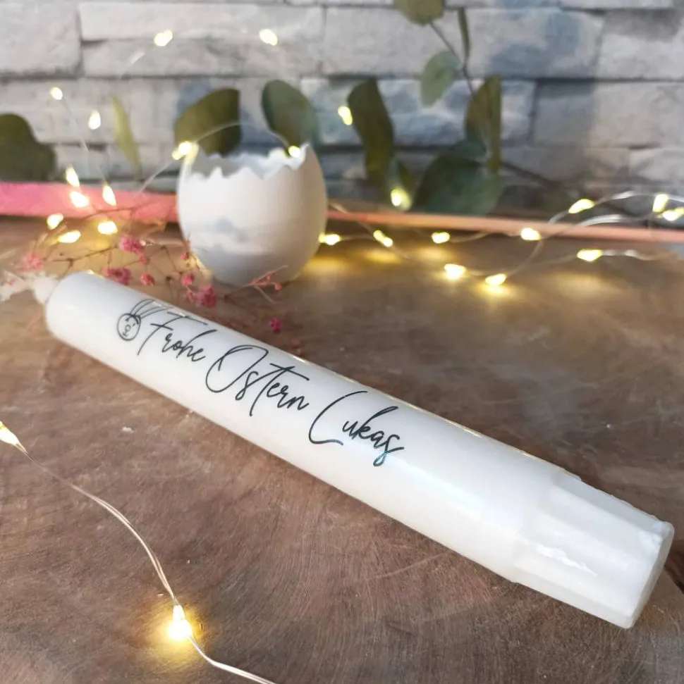 Eine personalisierte Osterkerze mit Namen ist mehr als Dekoration. Sie zaubert ein Lächeln in jedes Gesicht und ist das perfekte Geschenk für Familie und Freunde. Nutze sie als Tischdeko oder verschenke Freude und Liebe zu Ostern.