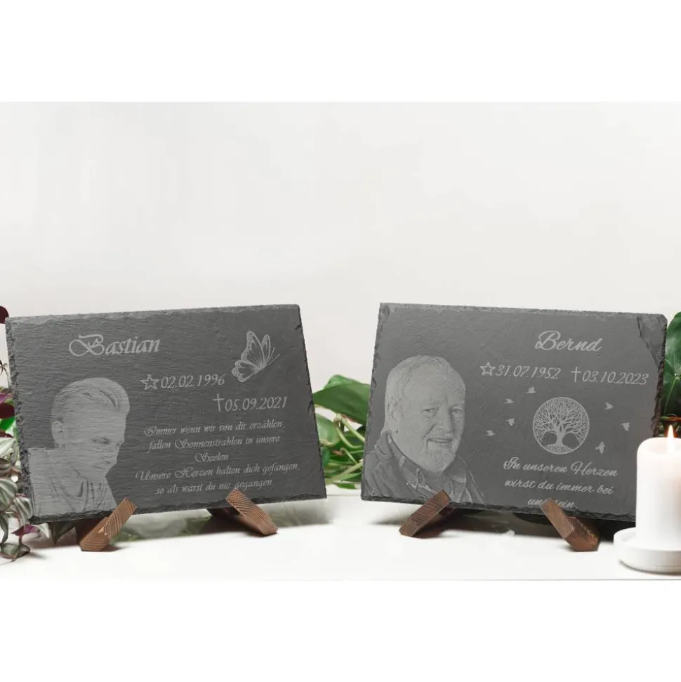 Schaffe mit einer individuellen Schiefertafel ein bleibendes Andenken an einen besonderen Menschen.