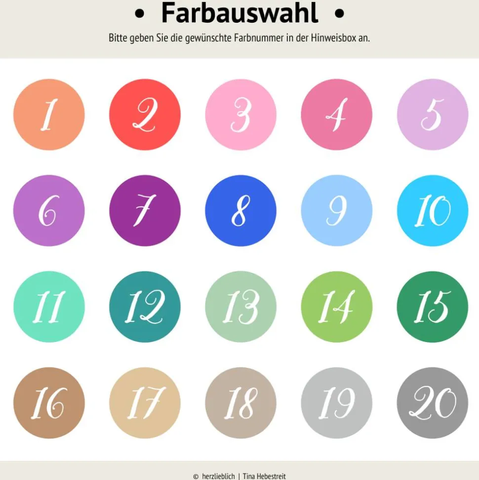 2. Geben Sie im Kommentarfeld Ihre Wunschdaten an (Motivnummer, Farbnummer, Anlass, Name(n), Datum). Senden Sie bitte Ihr Foto direkt nach dem Kauf per kasuwa-Nachricht oder E-Mail an bestellungherzlieblich.de.