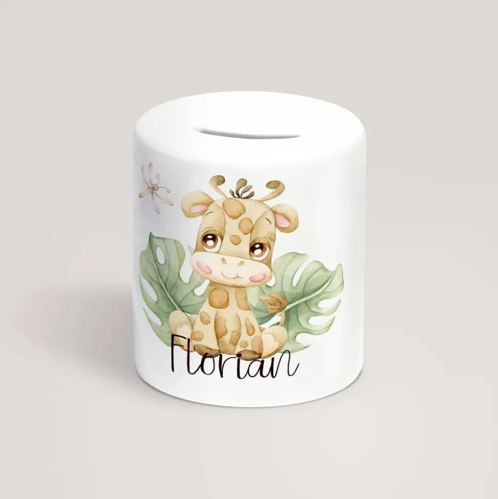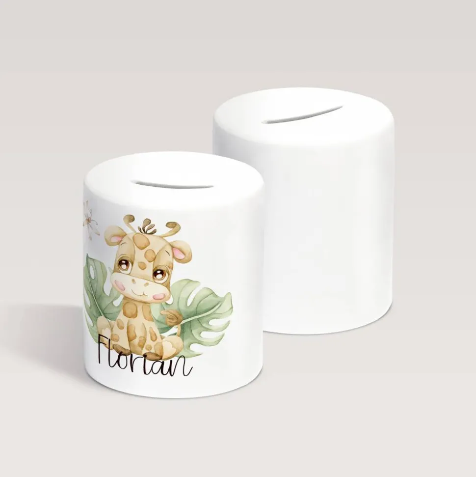 Diese Spardose aus Keramik ist einseitig bedruckt und mit einem Namen personalisierbar. Sie eignet sich somit perfekt als persönliches Geschenk für Jungen als auch Mädchen zum Kindergeburtstag, zur Einschulung, Taufe oder zur Geburt.