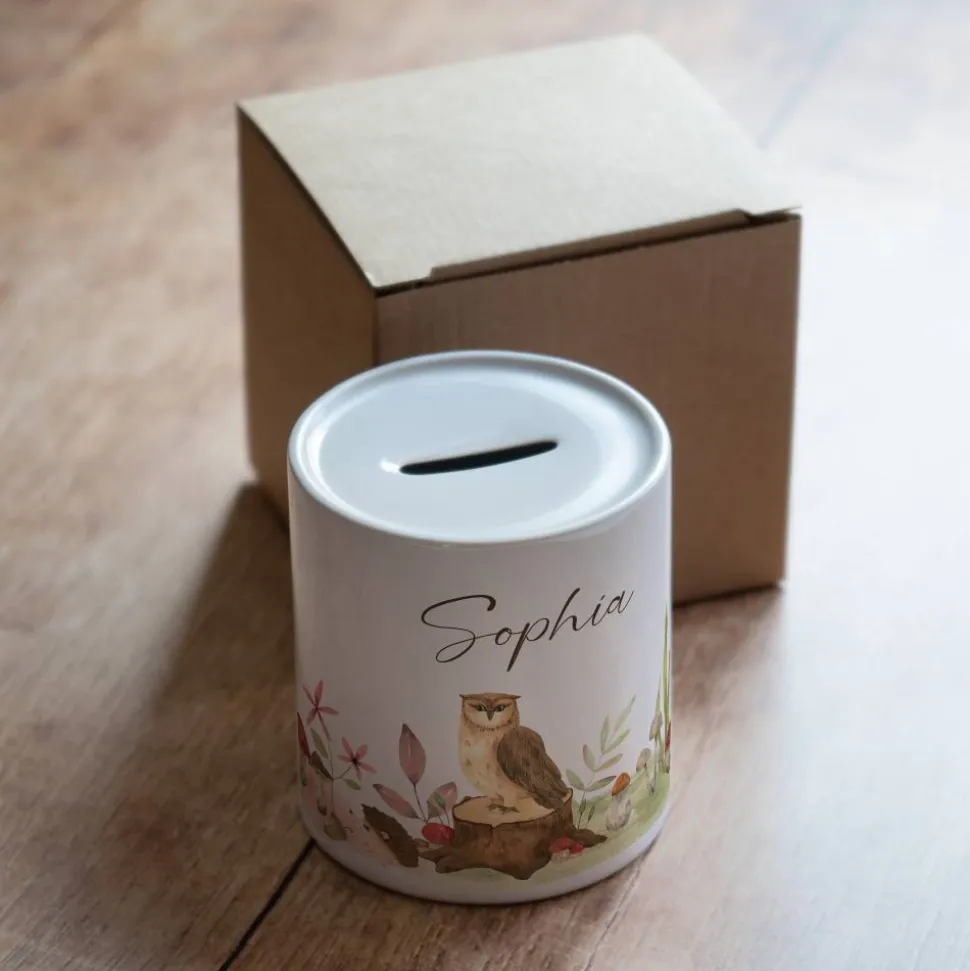 Diese Spardose aus Keramik ist rundum mit dem Panoramamotiv bedruckt und mit einem Namen personalisierbar. Sie eignet sich somit perfekt als persönliches Geschenk zum Kindergeburtstag, zur Taufe oder zur Geburt.