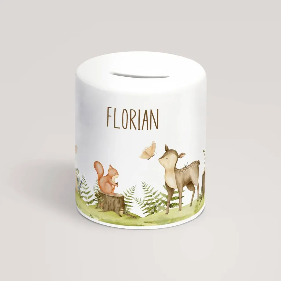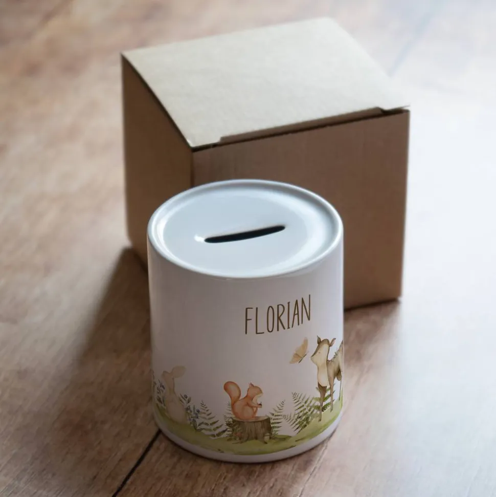Diese Spardose aus Keramik ist rundum mit dem Panoramamotiv bedruckt und mit einem Namen personalisierbar. Sie eignet sich somit perfekt als persönliches Geschenk zum Kindergeburtstag, zur Einschulung Taufe oder Geburt.
