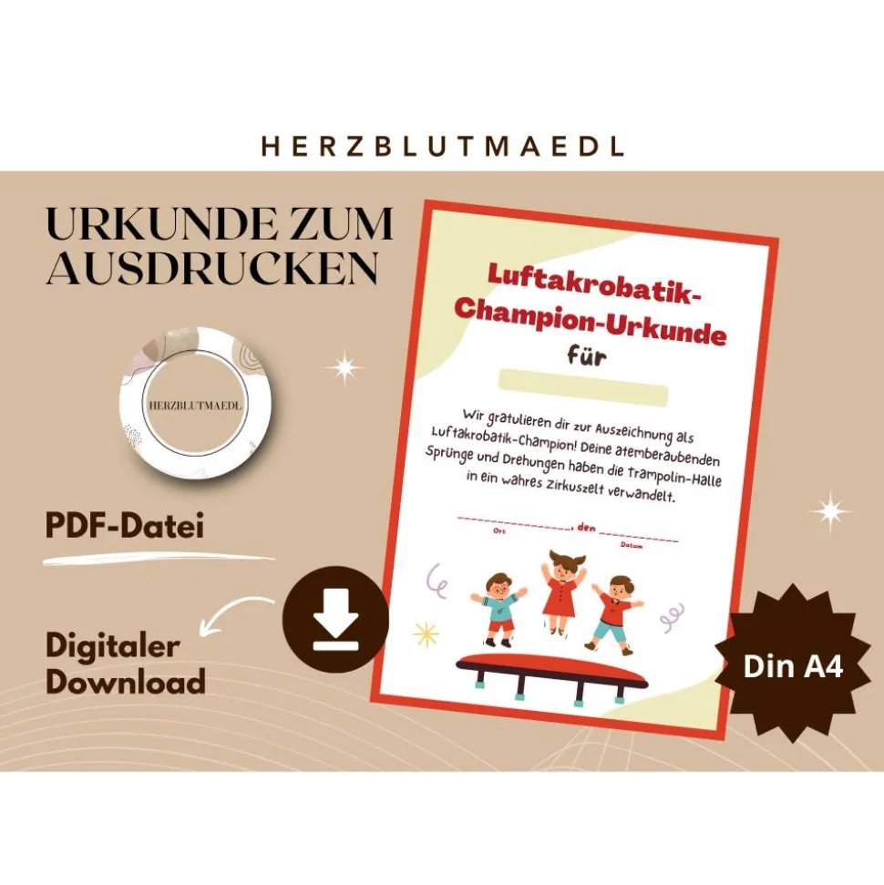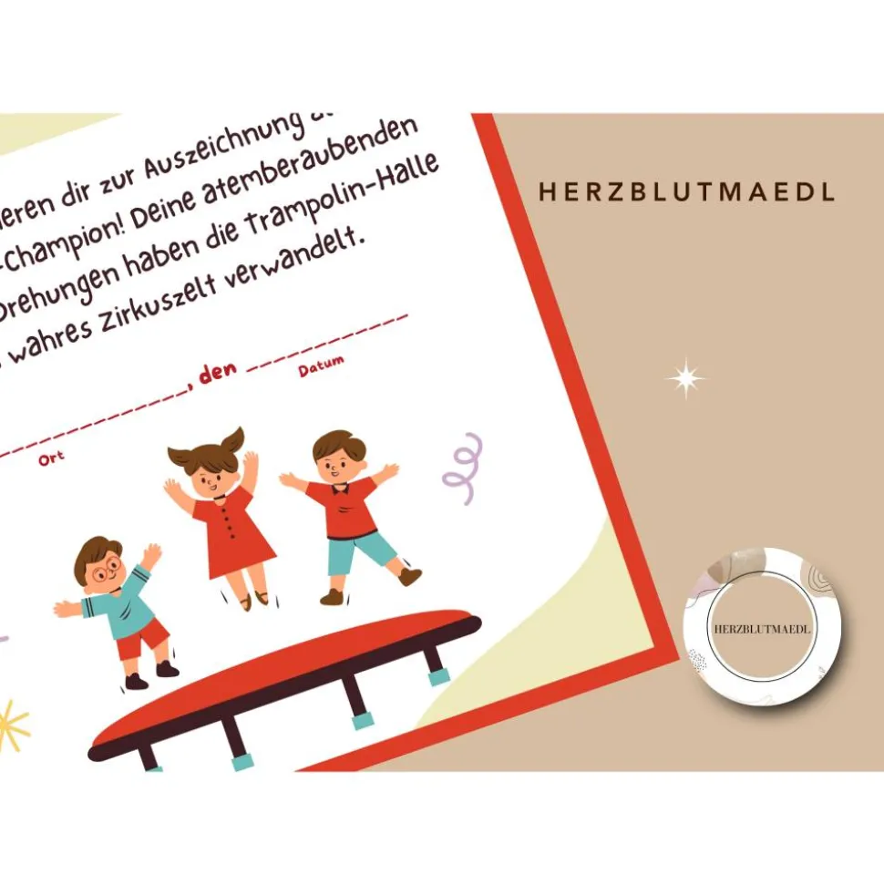 Für eine persönliche Note bieten wir dir die Möglichkeit, deine eigene Botschaft oder Widmung auf der Urkunde zu verewigen. Gegen einen geringen Aufpreis von nur 5 Euro kannst du deinen individuellen Text hinzufügen lassen, sei es eine herzliche Glückwunschnachricht, ein inspirierendes Zitat oder ein spezielles Datum. Dieses Angebot ist exklusiv in unserem Shop verfügbar, um sicherzustellen, dass dein Mitgebsel noch persönlicher wird. Lege einfach meinen Artikel „Urkunde mit Wunschtext“ zusätzlich in deinen Warenkorb und hinterlasse uns deine gewünschte Nachricht. Wir kümmern uns dann um den Rest, damit der Kindergeburtstag für immer unvergesslich bleibt.