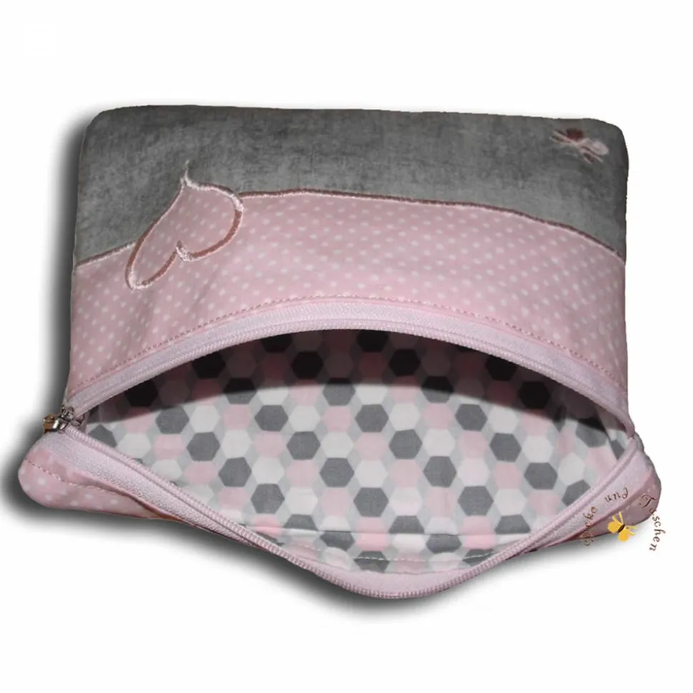 Waschbare Stoff-Tasche mit Bestickung Herz-Applikation und Wunschmonogramm, Universaltäschchen mit Innenfutter ohne sichtbare Innennähte