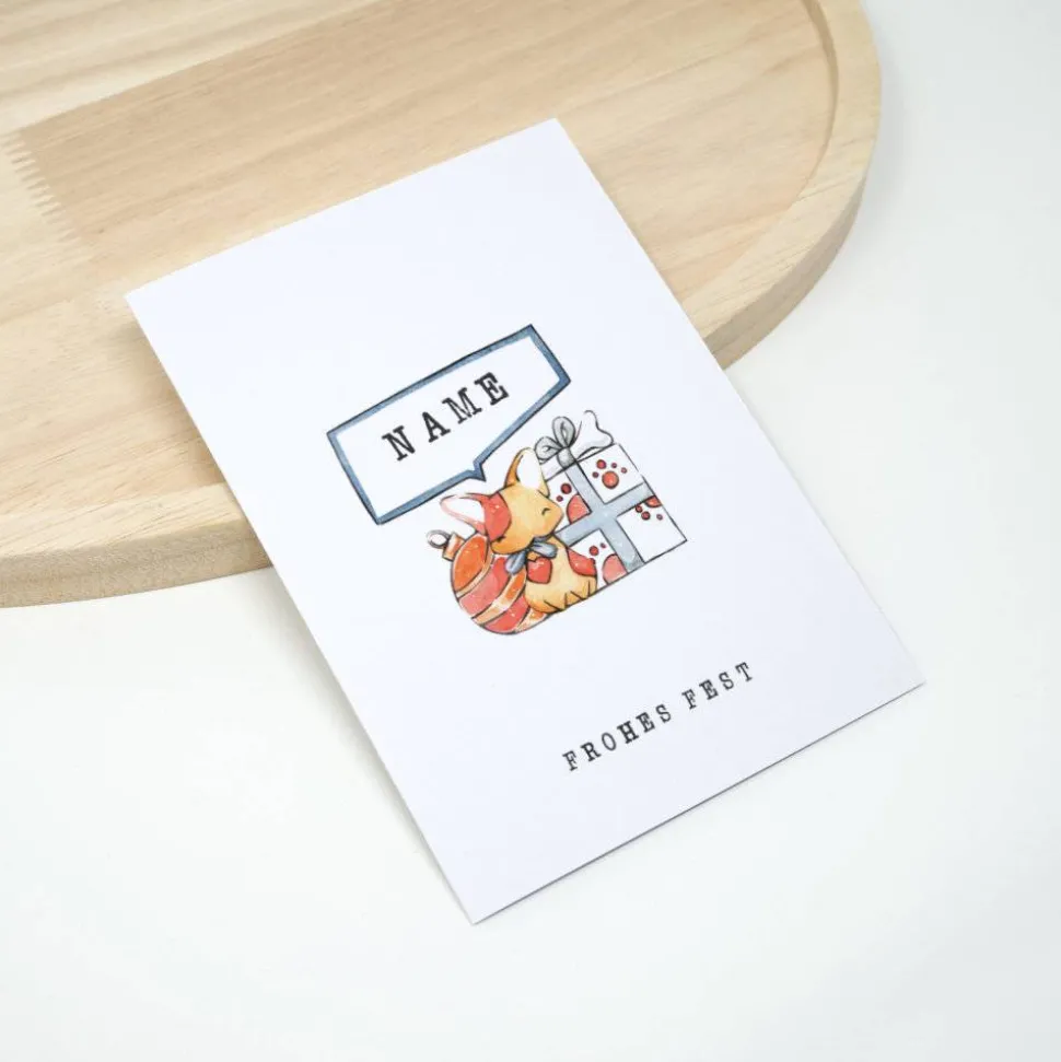 Versehe die kleine Weihnachtskarte mit einem Wunschnamen, wenn du möchtest. Das Motiv wurde mit Aquarell gezeichnet.