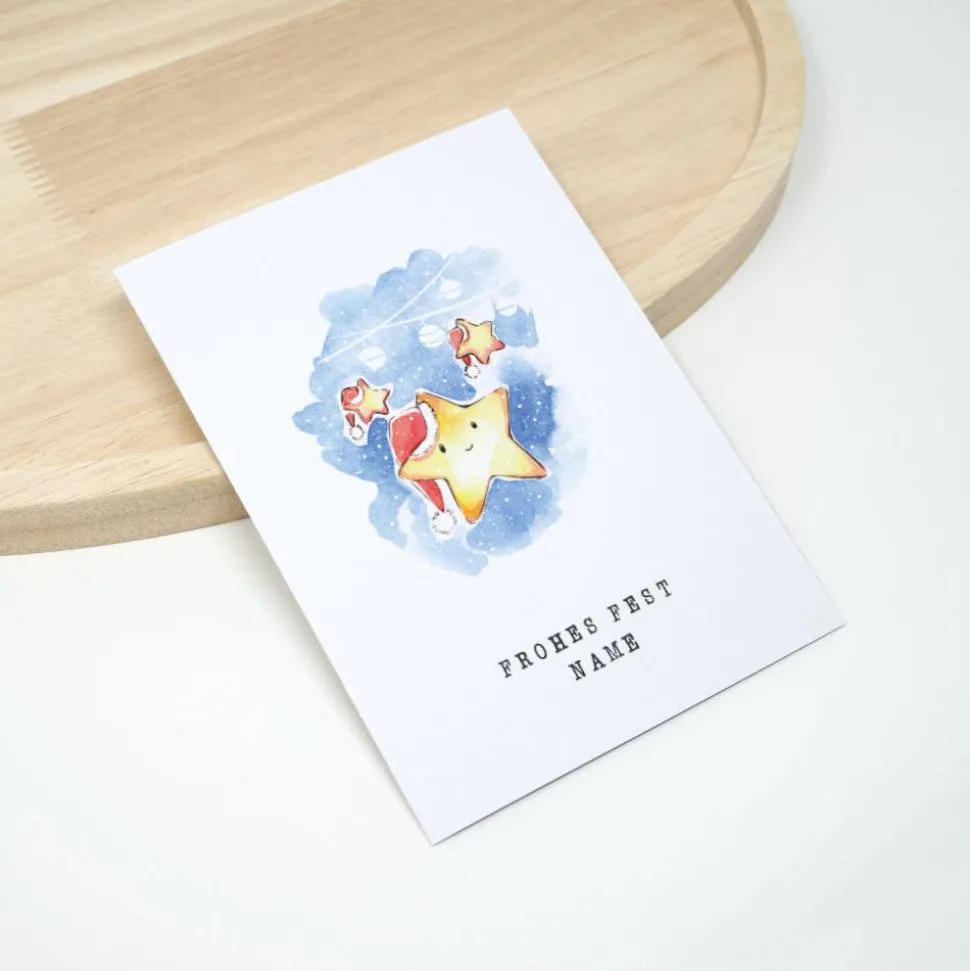 Versehe die kleine Weihnachtskarte mit einem Wunschnamen, wenn du möchtest. Das Motiv wurde mit Aquarell gezeichnet.