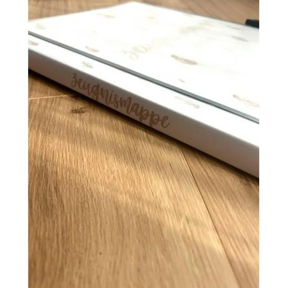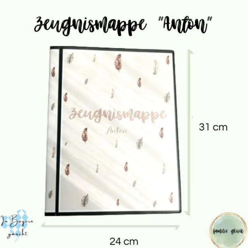 Personalisierte Zeugnismappe mit Name, Federdesign, Geschenk Einschulung, Schulkind, Zeugnisordner, Schulstart, Mappe
