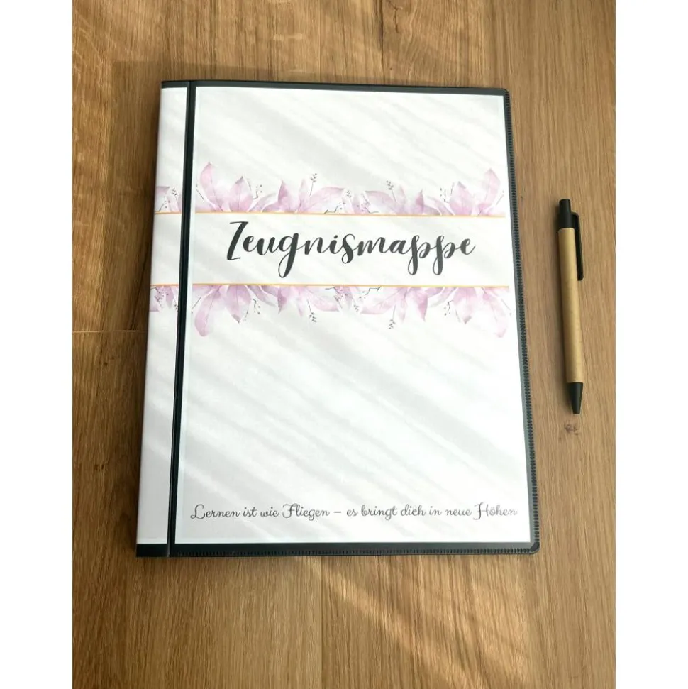 Personalisierte Zeugnismappe mit Name, floral rosa, Geschenk Einschulung, Schulkind, Zeugnisordner, Schulstart, Mappe