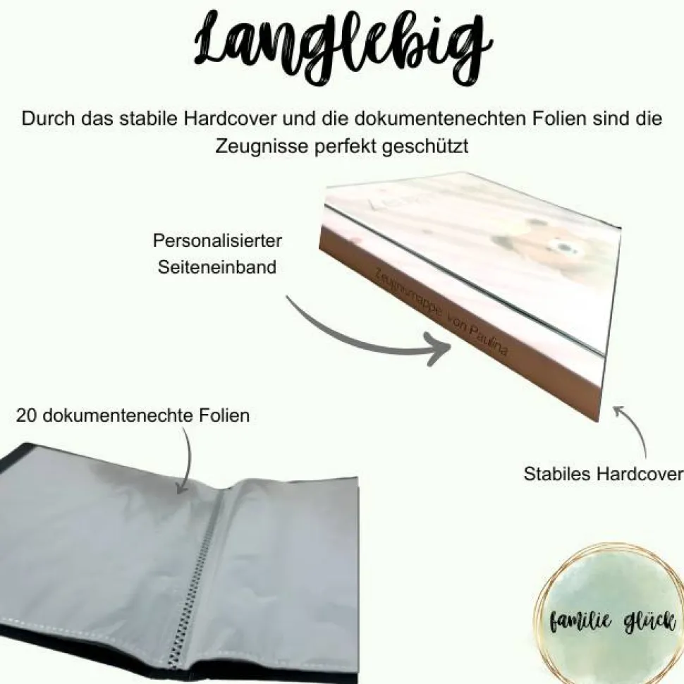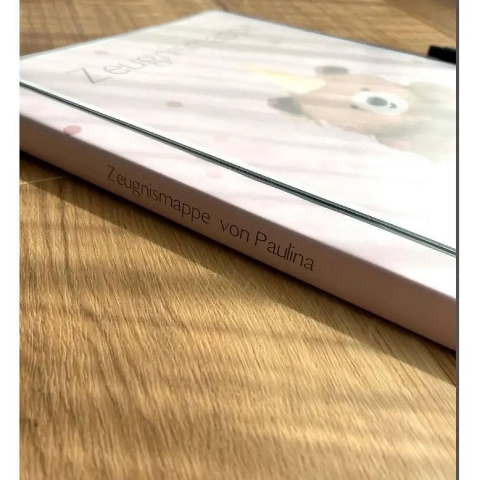 Personalisierte Zeugnismappe mit Name, rosa mit Bärchen, Geschenk Einschulung, Schulkind, Zeugnisordner, Schulstart, Map
