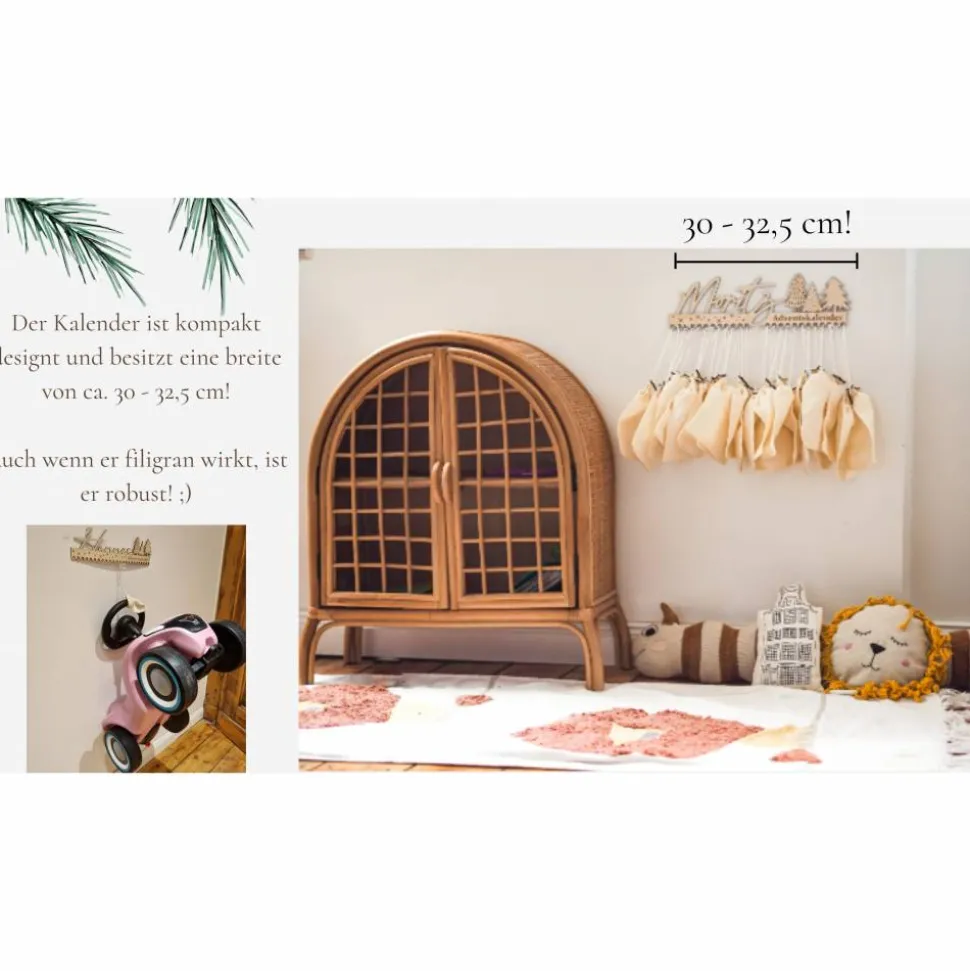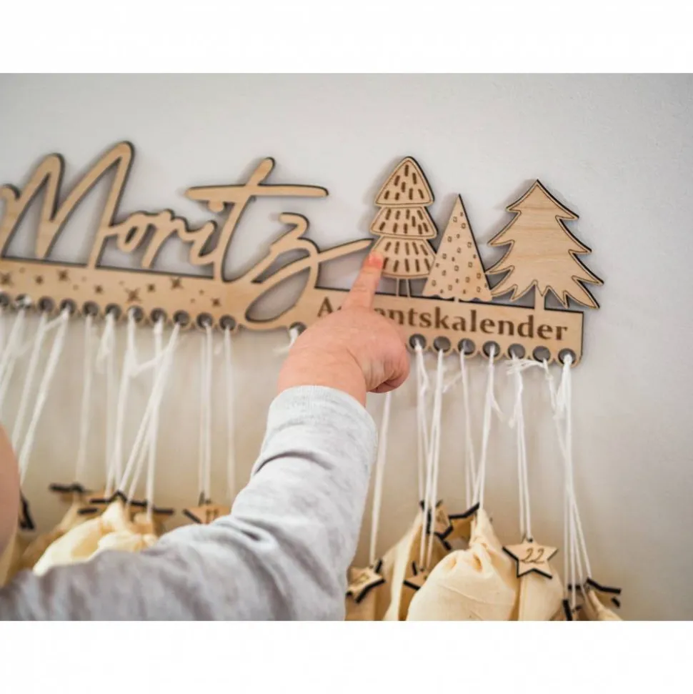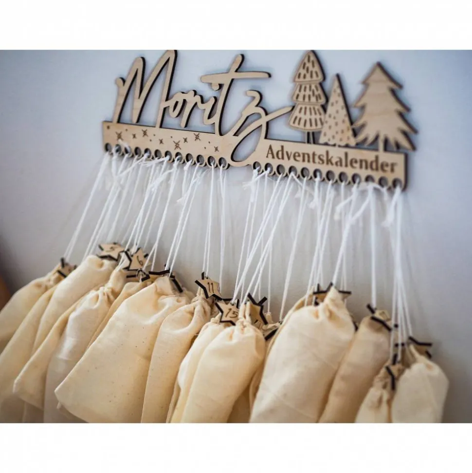– Der Adventskalender wird aus 5 mm starken, hochwertigen Pappelholz gelasert und ist ca. 30 – 32,5 cm breit.