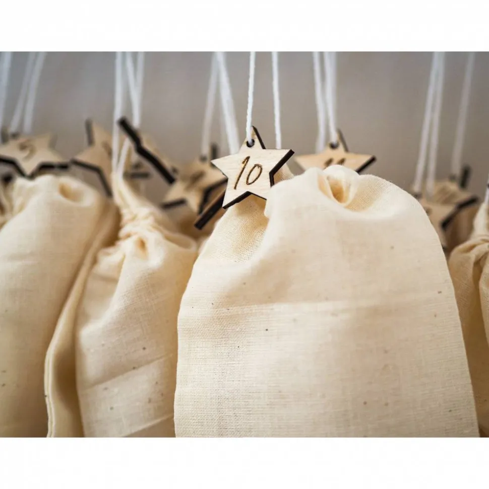 Die Säckchen sind aus Baumwolle und durch einen kleinen Stern mit einer Nummer zwischen 1 und 24 versehen. Je nach belieben könnte ihr nur den Kalender, den Kalender mit Sternchen oder Kalender, Sternchen und Baumwollsäckchen bestellen,