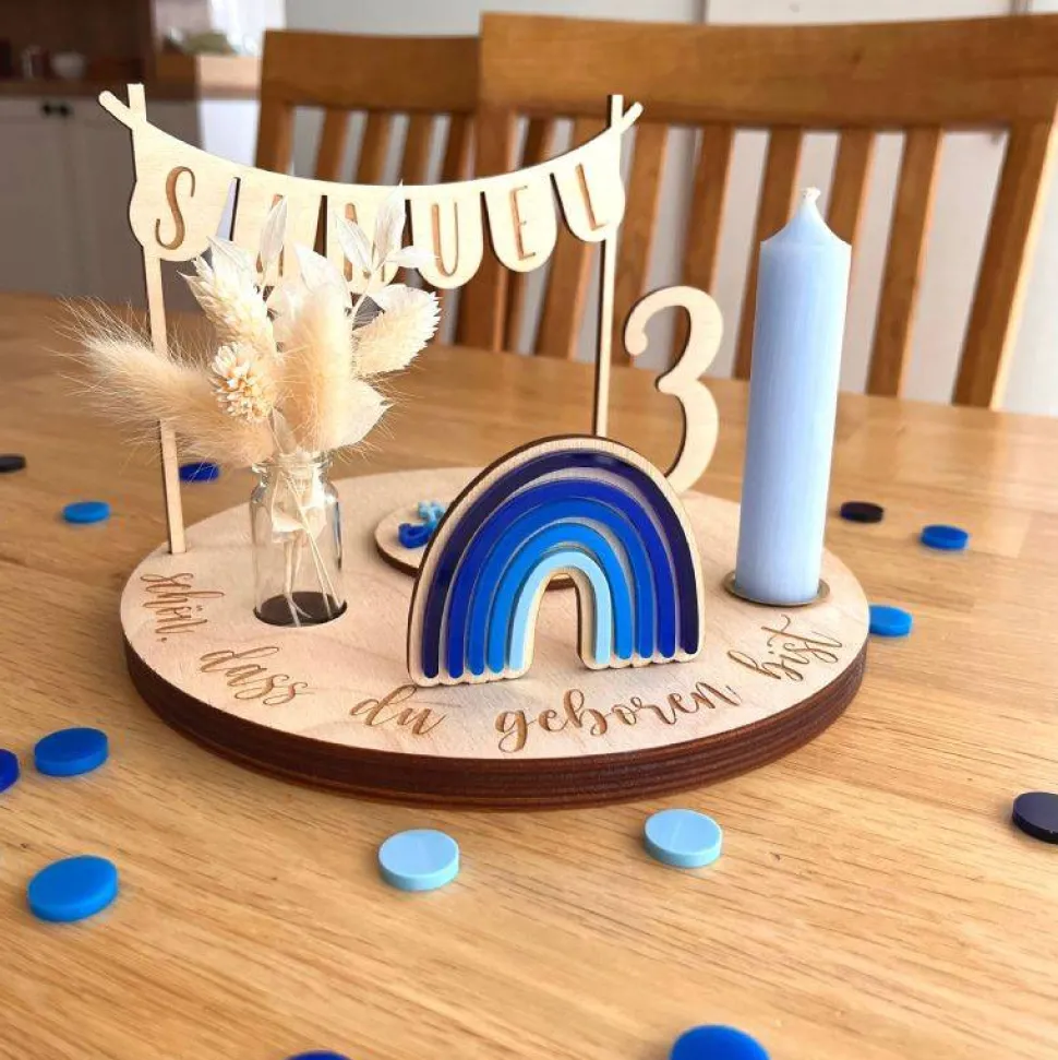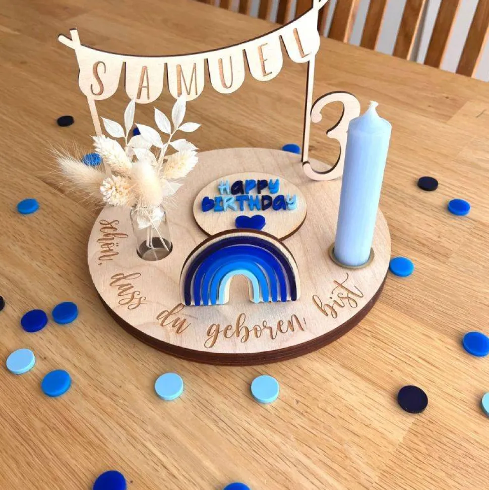 – der Geburtstags-Basisteller mit der Aufschrift „Schön, dass du geboren bist“