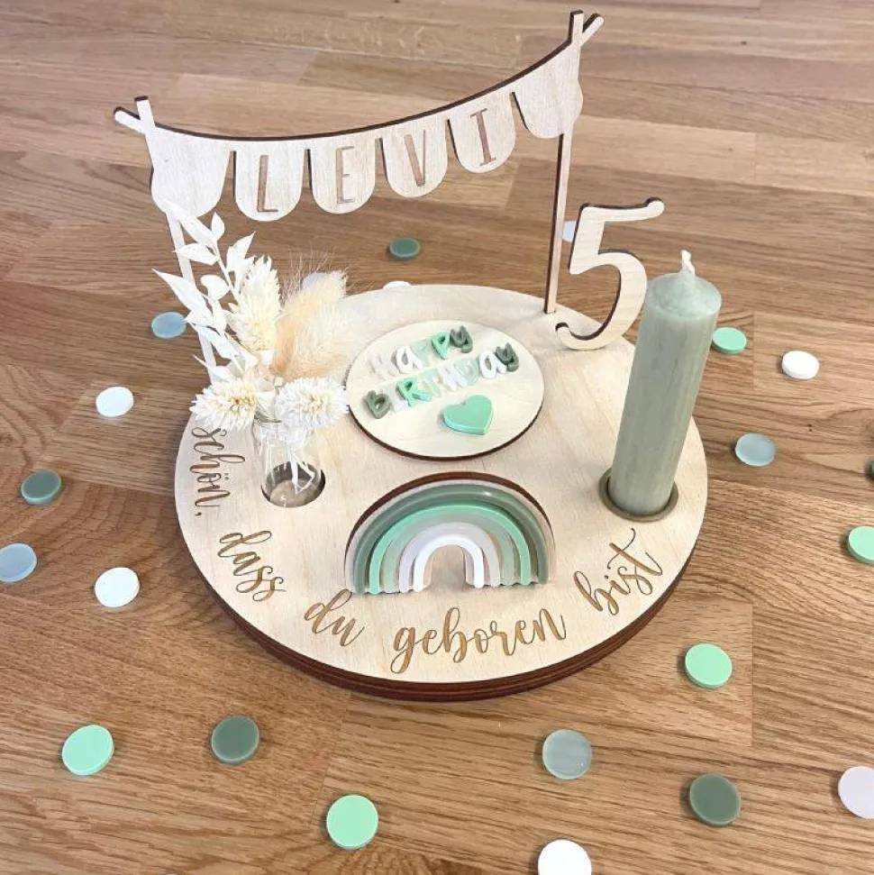 – der Geburtstags-Basisteller mit dem Text „Schön, dass du geboren bist“