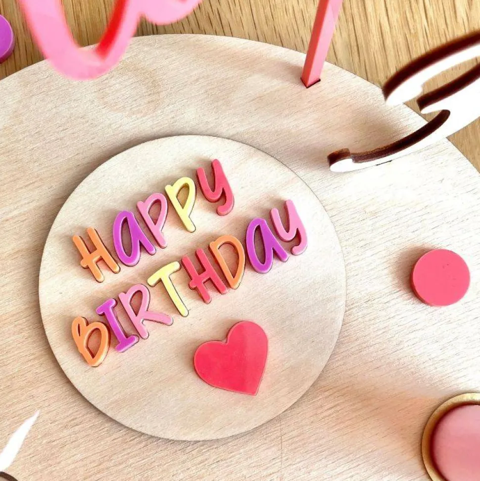 – ein buntes Holzschild mit „happy birthday“