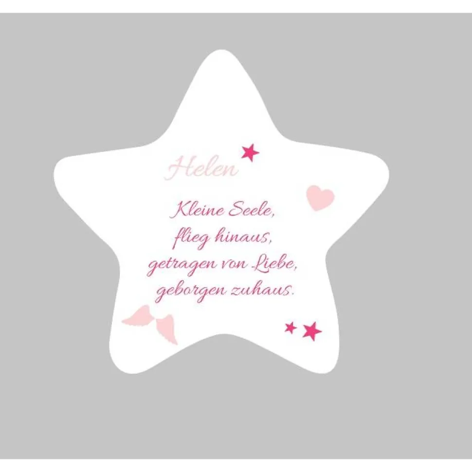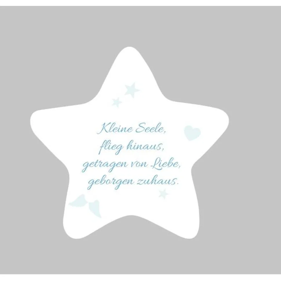 Die sanfte Farbgestaltung in Weiß oder Grau verleiht ihm eine schlichte Eleganz, die sich harmonisch in jede Umgebung einfügt. Kleine Herzen, Sterne oder Engelsflügel unterstreichen die liebevolle Botschaft.