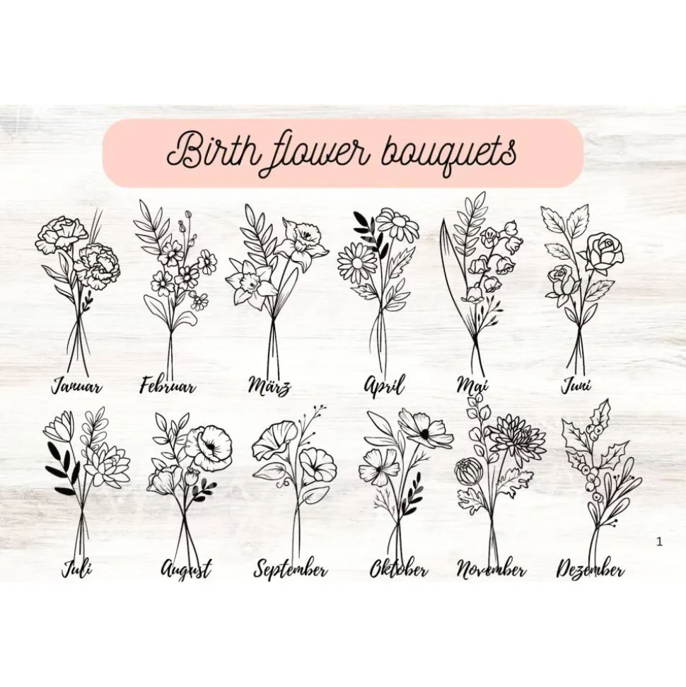 Jede Geburtsblume erzählt ihre eigene Geschichte. Zusammen mit Name und Datum entsteht ein Erinnerungsstück, das nicht nur dekorativ ist, sondern tief berührt. Ganz natürlich, ganz ehrlich, ganz handgemacht.