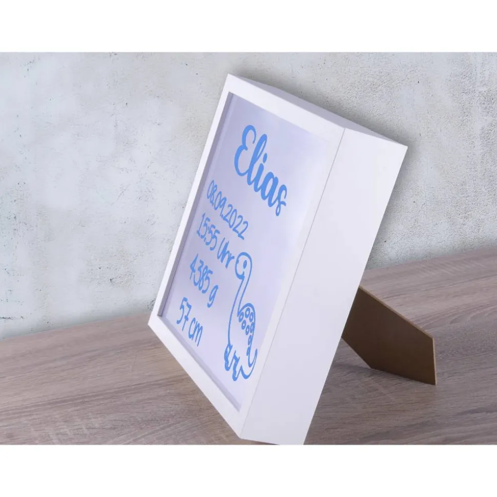 Der Rahmen wird mit einer Lichterkette (AA-Batterien nicht enthalten) betrieben, so dass dieser überall einfach aufgestellt werden kann. Wenn die Lichterkette eingeschaltet ist, kommt der Stern-Effekt der 3D Folie zur Geltung.