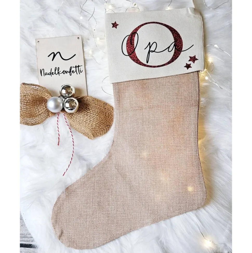 Der Strumpf ist ca. 40cm lang und 25cm breit. Die Öffnung hat eine Breite von ca. 17cm.
